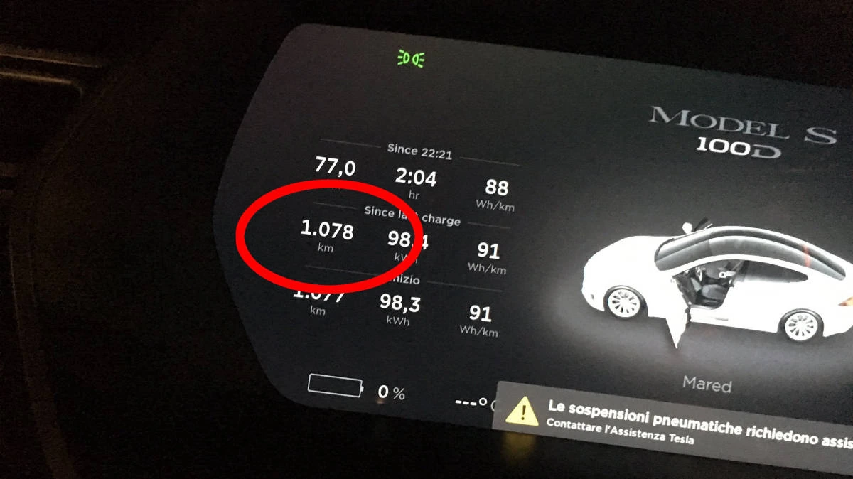 Правда, как отмечают в компании Tesla, если двигаться на Model S 100D с постоянной скоростью в 72 км в час без использования кондиционера и при наружной температуре 43С, самая мощная легковая Тесла в теории способна преодолеть 528 миль (845 км). Однако, члены итальянского клуба владельцев Tesla опытным путем показали, что это вовсе не предел.