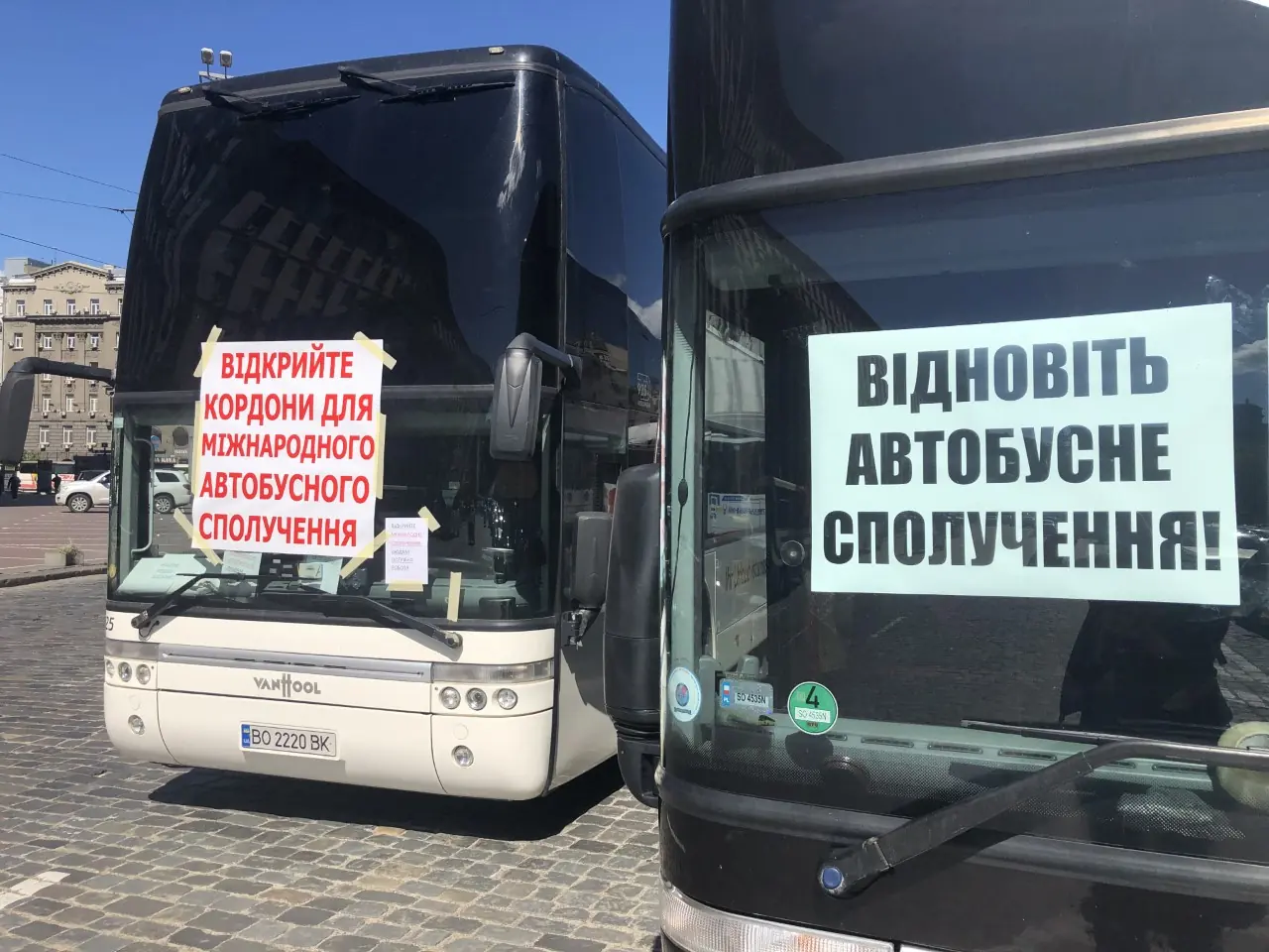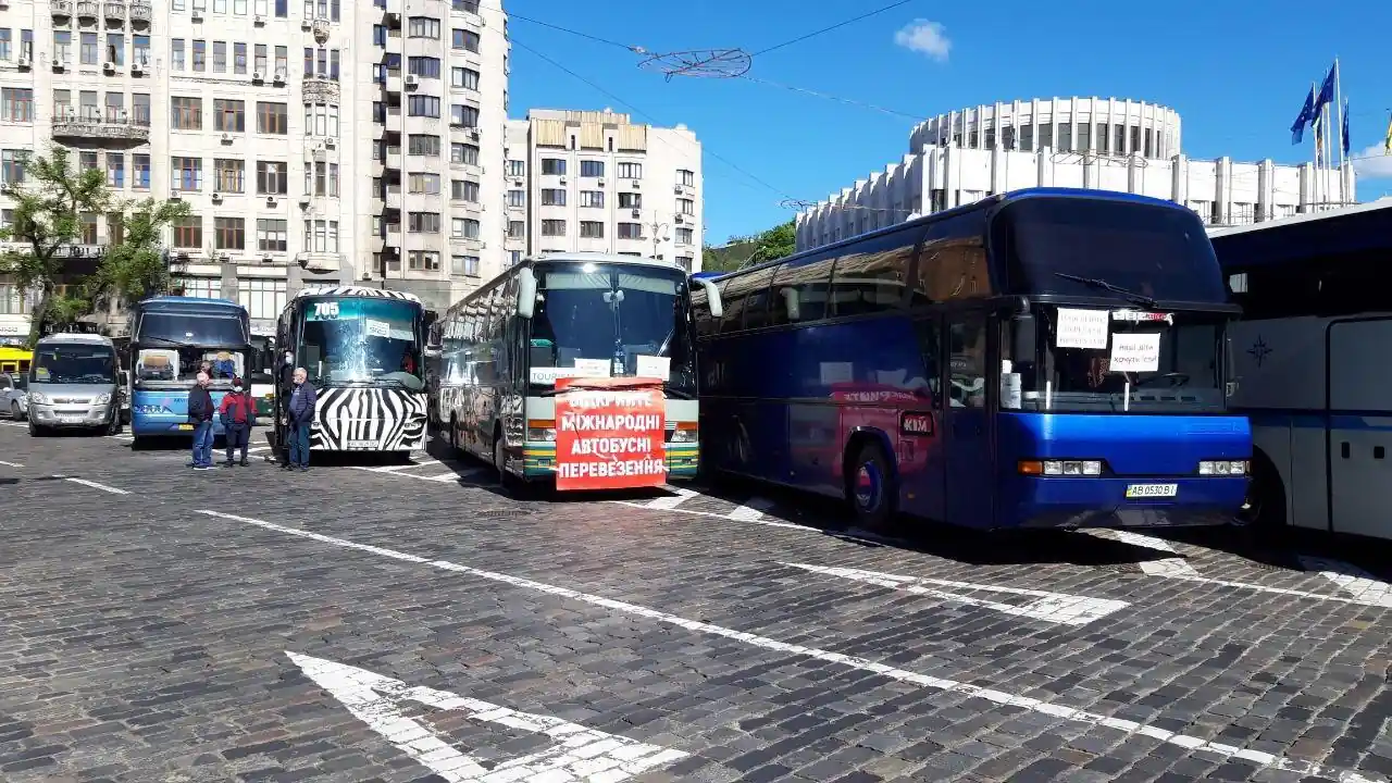 Сегодня в самом центре Киева, на Европейской площади можно было наблюдать несколько десятков туристических автобусов. Оказывается, у пассажирских перевозчиков лопнуло терпение, и они пришли пикетировать Кабмин. Главное требование – дать возможность работать на междугородных и международных маршрутах. Люди сидят без работы уже два месяца и им уже нечем кормить свои семьи.