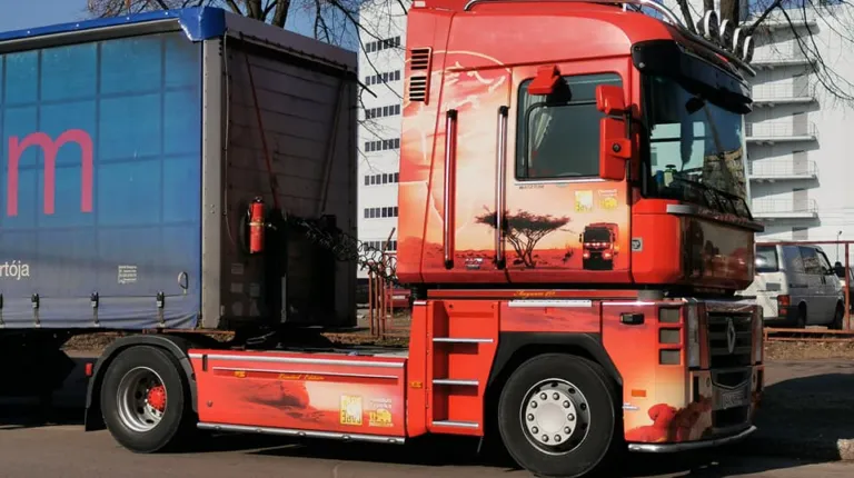 Магистральный тягач Renault Magnum не выпускается уже несколько лет, однако по-прежнему пользуется большой популярностью у отечественных дальнобойщиков. Главная фишка машины – роскошная кабина, с совершенно ровным полом. Так вот, на днях на столичных дорогах был замечен один такой тягач Renault Magnum просто с уникальной раскраской. Это настоящая авторская работа.