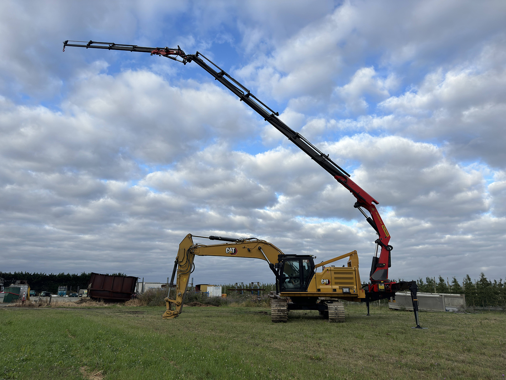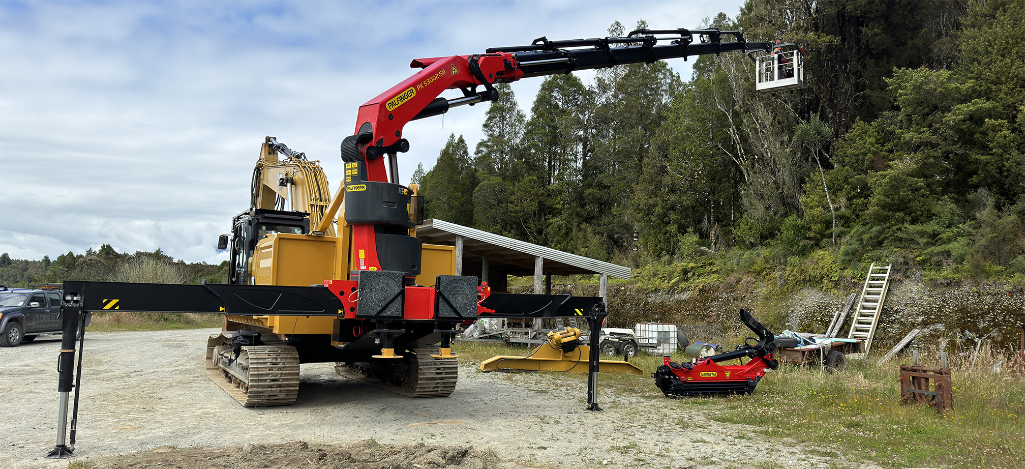 Компания Waimea Engineering из Новой Зеландии, занимающаяся ремонтом и доработкой грузовиков и тяжелой строительной техники, представила революционный продукт. На гусеничный экскаватор CAT модели 330 был установлен мощный кран-манипулятор Palfinger PK53002SH, с лебедкой и гуськом Flyjib.