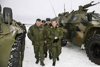 Президенту продемонстрировали новые бронированные машины для транспортировки военнослужащих, созданные на базе отечественных автомашин «КАМАЗ». Медведева в ходе осмотра особенно заинтересовали прочность и безопасность новой техники. Он уточнил, насколько машины защищены от пулевого попадания и взрыва мин.