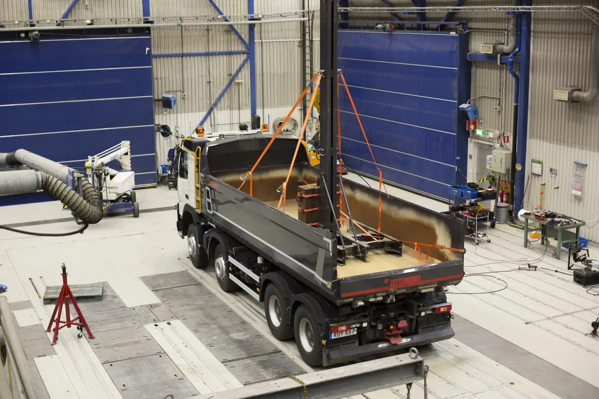 Однако сегодня мы расскажем об еще одном довольно жестком испытании - сбрасывании тяжеленого груза на самосвал Volvo FMX. Только представьте, железобетонный блок в 2 тонны, который попросту кидают с высоты от 0,5 м до 3,5 м. И так 26 раз. Сперва, глядя на видео, можно подумать, что это проверяют на прочность самосвальный кузов шведский марки Zetterbergs.