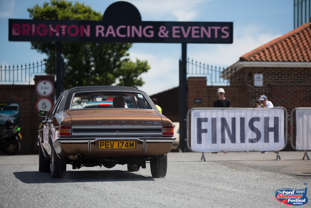 Из исторического собрания компании на фестиваль прибыли первенец семейства Mk 1, модель второй генерации с пробегом всего 27300 км на одометре, а также несколько оригинальных, не реставрированных спортивных версий XR2. Финишировала колонна на гоночном треке в Брайтоне, где экипажи ждал праздничный торт и другие участники фестиваля.