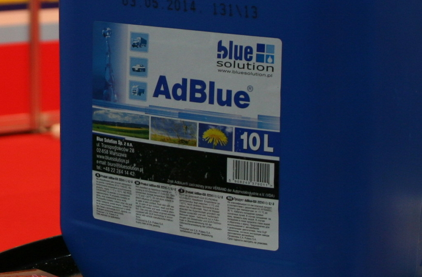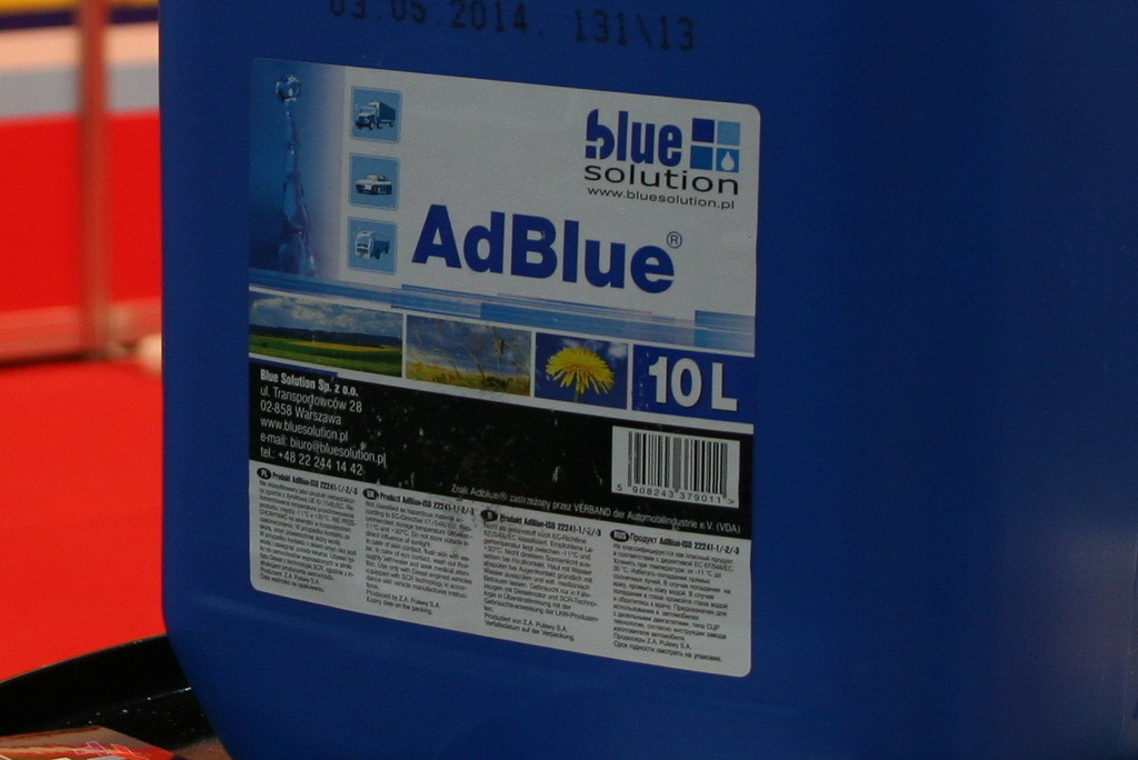 На стенде львовской фирмы «Тедекс Мастила Украина», посетившей SIA 2013, замечено вещество AdBlue – водный раствор мочевины, который применяется в современных дизельных автомобилях (экологический стандарт Euro V) для снижения токсичности отработавших газов. AdBlue в малых дозах впрыскивается в выхлопную систему машин с системой SCR, и присутствующие в его составе вещества вступая в реакцию с выхлопными газами, снижают их токсичность.