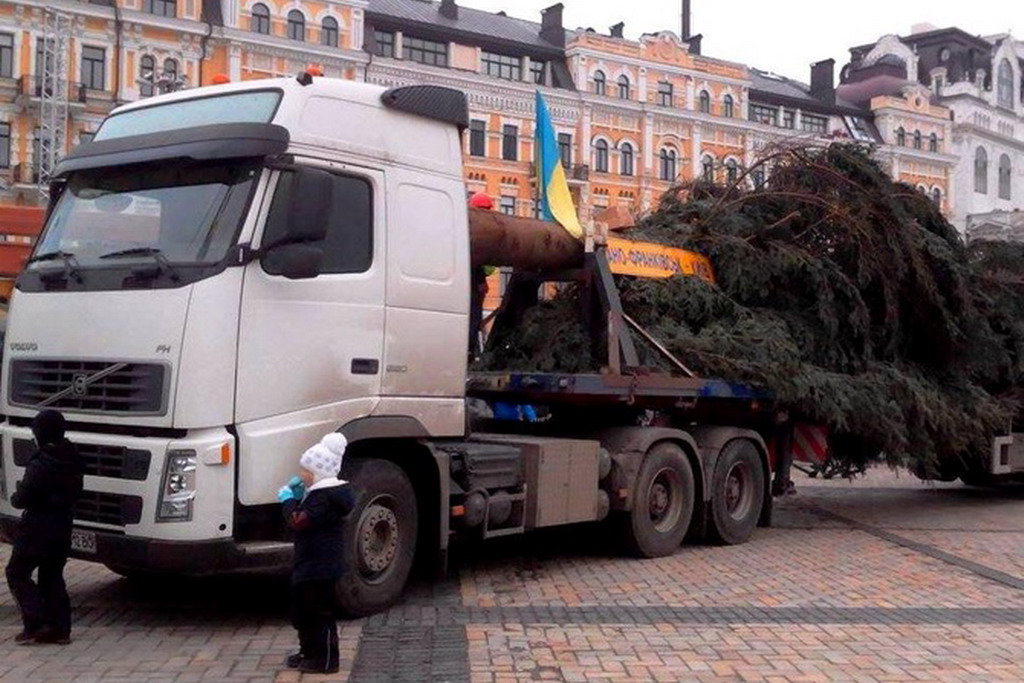 С места рождения – Надднепрянского района, Ивано-Франковской области елка путешествовала в Киев три дня. Шутка ли везти такой негабарит на 30-метровом автопоезде. Последний, кстати, состоял из трехосного седельного тягача Volvo FH и специального полуприцепа-трейлера с раздвижной рамой. Подарок детишкам получился на славу. Правда, и недешевый – только изготовление одних елочных игрушек, которые сегодня также были выставлены на Софийской площади, обошлось в 29 тыс. грн. Однако радость и улыбка детей того стоят. Огни на главной елке страны зажгут традиционно в День Святого Николая, 19 декабря.