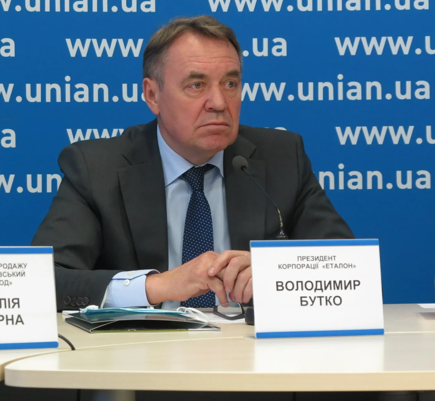 Владимир Бутко Президент корпорации «Эталон» В тендерах по закупкам на средства ЕБРР и Европейского инвестиционного банка ставится такие условия, которые заведомо исключают участие нашего предприятия. Например, это наличие разового контракта на 8 млн евро – это порядка 40 автобусов большого класса, что составляет почти 10% всего рынка таких машин в Украине.  По закупкам для Тернополя на 15 машин победили мы, так как наш автобус на 17 тыс. евро дешевле. Отмечу, что на предприятиях корпорации «Эталон» сегодня работает 1200 человек. Ежегодно мы платим налогов на сотни миллионов гривен.