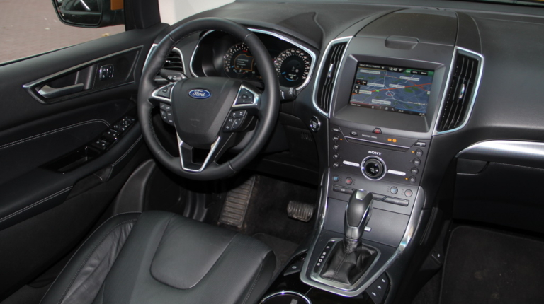 Оснащение Ford Edge богатое и уже в начальной версии есть система бесключевого доступа, датчики света и дождя, климат-контроль, камеру заднего вида. Топовый вариант Lux добавляет отделку кожей, электроприводы рулевой колонки и передних сидений.
