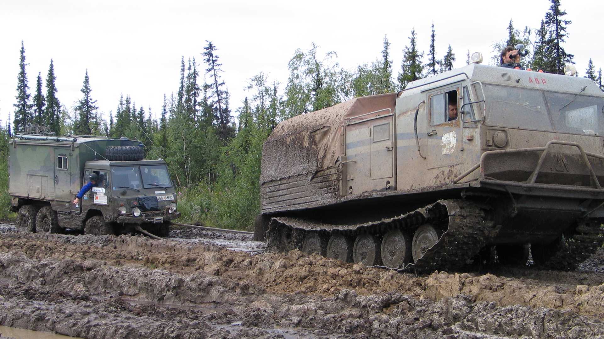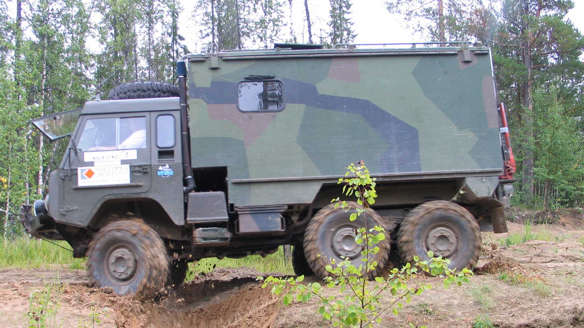 У многих этот трехосный внедорожник Volvo C304 вызовет чувства вседозволенности – на такой машине можно проехать везде. И они будут недалеко от истины. Здесь три ведущих моста, причем портальных, что вместе с 37-дюймовыми колесами обеспечивает внушительный дорожный просвет. Плюс к этому блокируемые межколесные дифференциалы и пониженный ряд в трансмиссии. Машина к тому же довольно легкая, имеет минимальные передний и задний свесы.