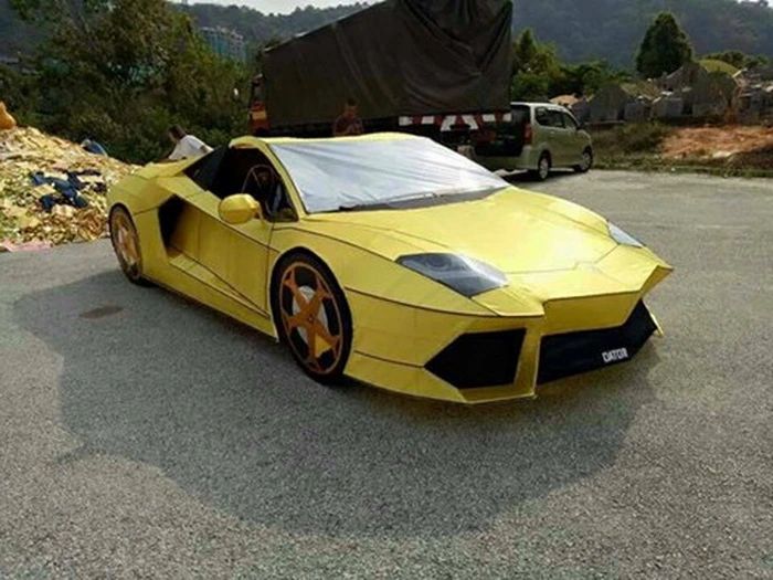 Тайваньский умелец построил полномасштабную копию Lamborghini Aventador, которую затем сожгли. Но фанатам такого рода авто волноваться не стоит — речь идет не о функциональной реплике, а машине, сделанной из бумаги.