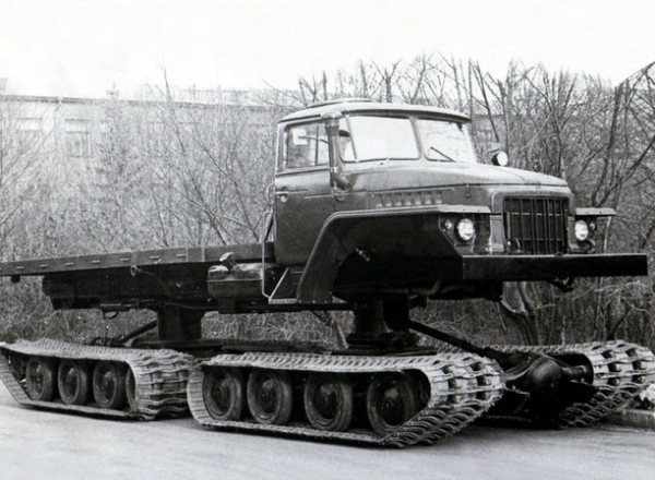 Итак, расскажем подробнее об этом уникальном транспортном средстве. Этот снегоболотоход имеет индекс «Урал-5920» и ведет свою родословную от опытной разработки НАМИ-0157, построенной еще в 1973 году. После доработки и продолжительных испытаний мелкосерийное производство машины было налажено в 1985 году, но продолжалось недолго – всего 4 года. Основное предназначение снегоболотохода – работа на предприятиях нефтегазового комплекса, по труднопроходимой местности (болото, снег) при температурах наружного возлуха от +40 до -50С.