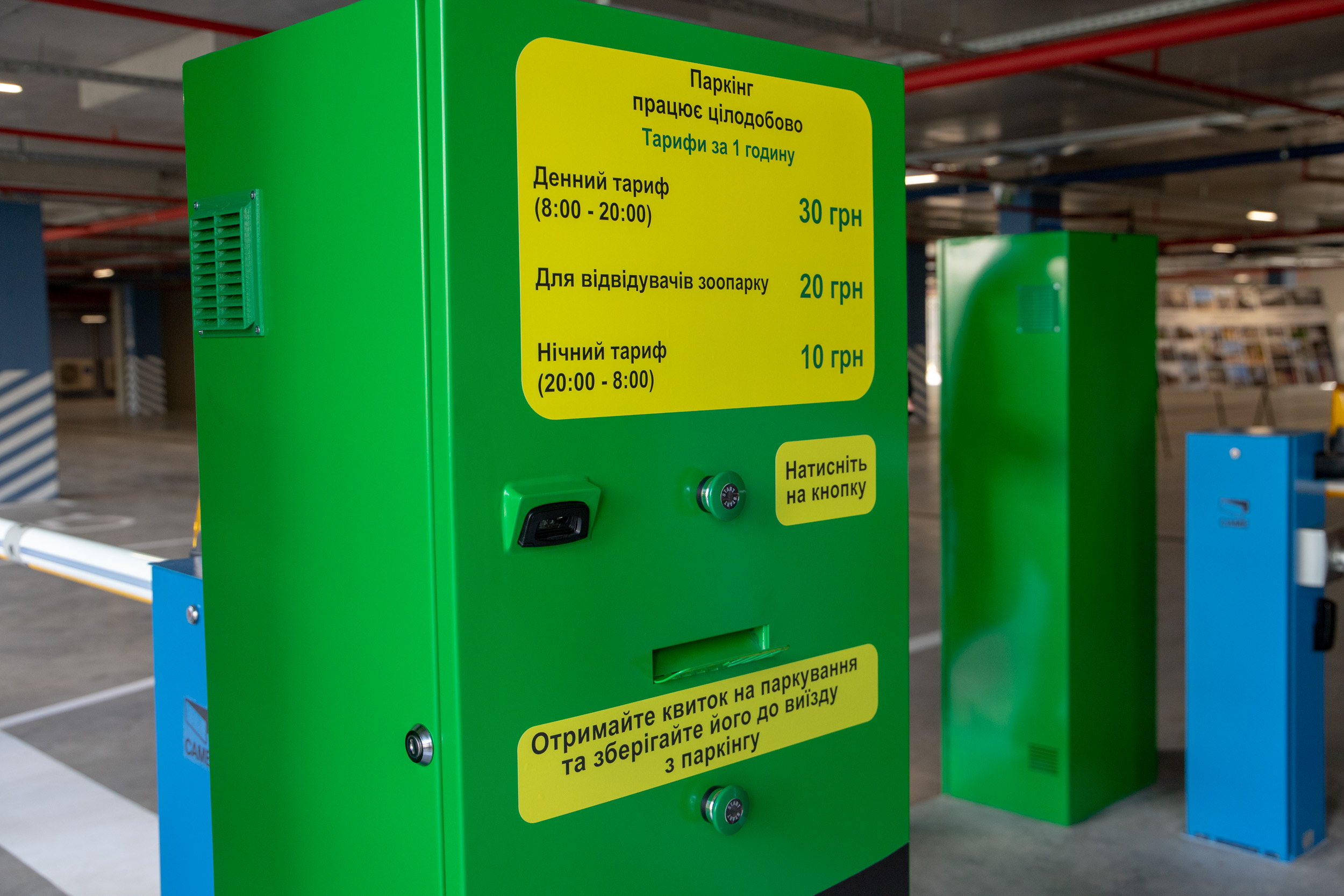 Друзі! Сьогодні ми відкрили новий сучасний триповерховий паркувальний комплекс на 435 паркомісць – «Зоопаркінг». Аби розвантажити проспект Перемоги, паркінг розташований на території господарської зони зоопарку – з боку вулиці Зоологічної. Це сьогодні – найкращий муніципальний паркінг в Україні!Новий паркінг обладнаний всіма необхідними сучасними інженерними системами, що інтегровані в загальну диспетчерську систему зоопарку. Тут облаштували і енергоефективну систему автоматичного керування освітленням. Встановили 7 зарядних станцій, що дозволять одночасно заряджати 21 електроавтомобіль. Працює сучасна охоронна система.Для можливості входу відвідувачів з паркінгу до зоопарку на першому поверсі облаштували вхідну групу з касою. Для оплати послуг паркування та купівлі квитків до зоопарку, крім каси встановили 3 автомати для безготівкового розрахунку. Та 1 – що підтримує також операції з паперовими грошима. На паркінгу створені зручні умови для маломобільних груп населення. – Місця паркування для відвідувачів з інвалідністю розташовані на першому поверсі, поблизу каси та входу до зоопарку. Встановлені 3 ліфти, облаштований пандус та широкі проходи, туалет обладнаний допоміжними пристроями. Поряд розташована кімната матері та дитини.Довкола паркінгу здійснили благоустрій території, облаштували також велопарковку.