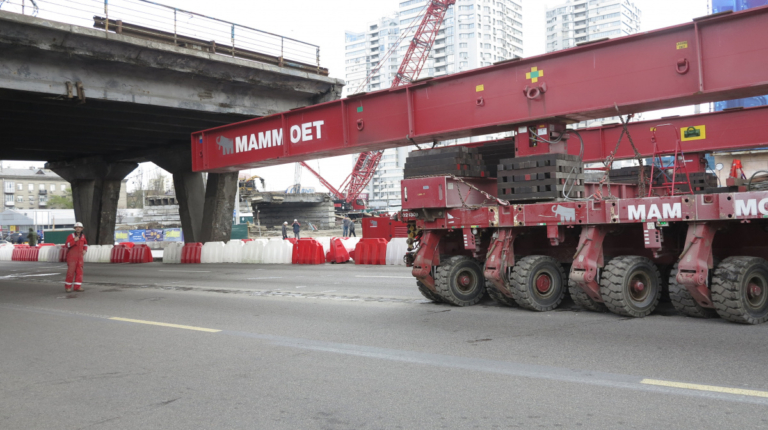 Что же касается огромного домкрата, то он имеет обозначение ABC и собрала его компания Mammoet. Он состоит из двух подвижных платформ, каждая из которых имеет 20 пар управляемых при помощи гидравлики колес, что обеспечивает прекрасную маневренность. Вместе на платформы можно разместить груз массой до 2000 тонн! При этом высота подъема домкрата – до 20 метров, сообщает ubr.ua. Домкрат снимает старые пролеты, а затем устанавливает на их место новые.