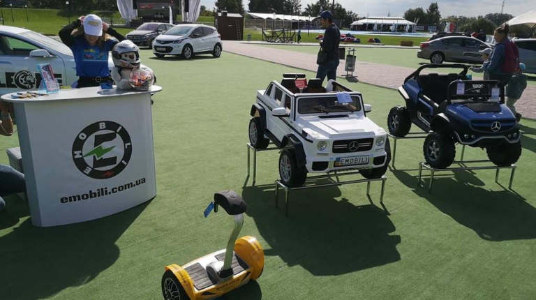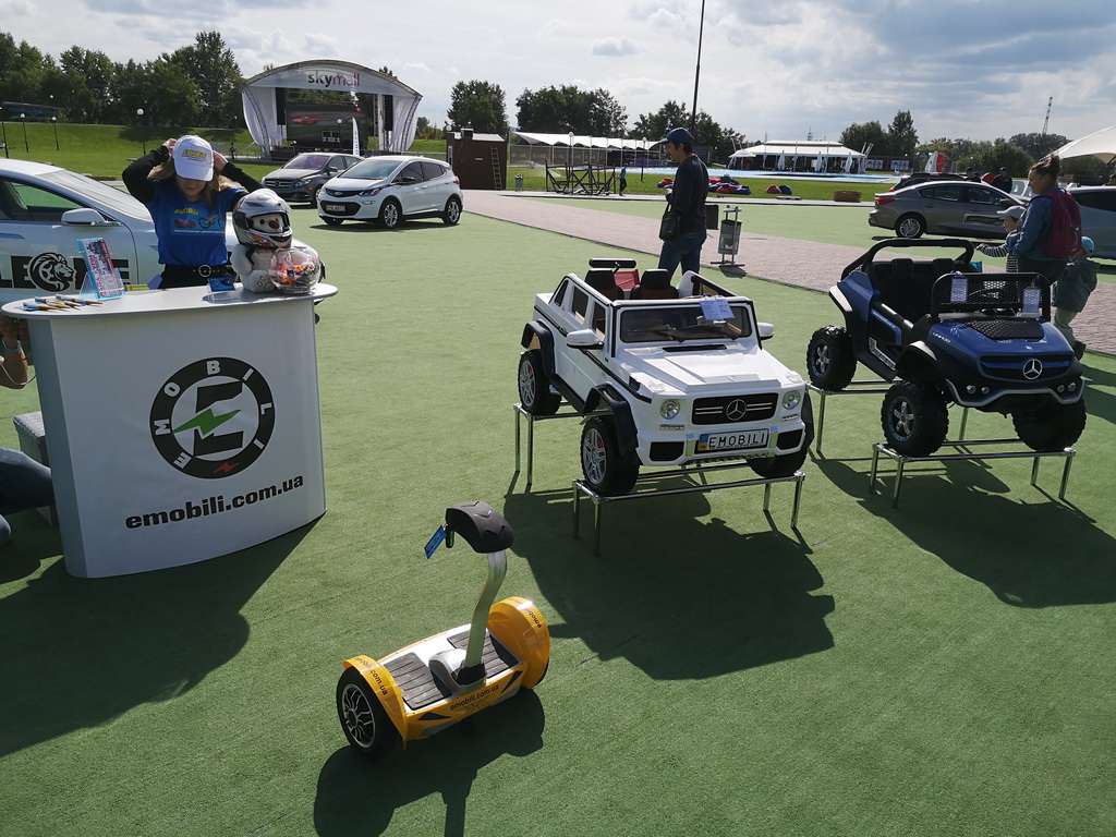 По соседству электрическую тему продолжала компания Emobili, которая знакомила посетителей с детскими электрокарами, электровеломобилями, гироскутерами и другими транспортными средствами на электротяге.