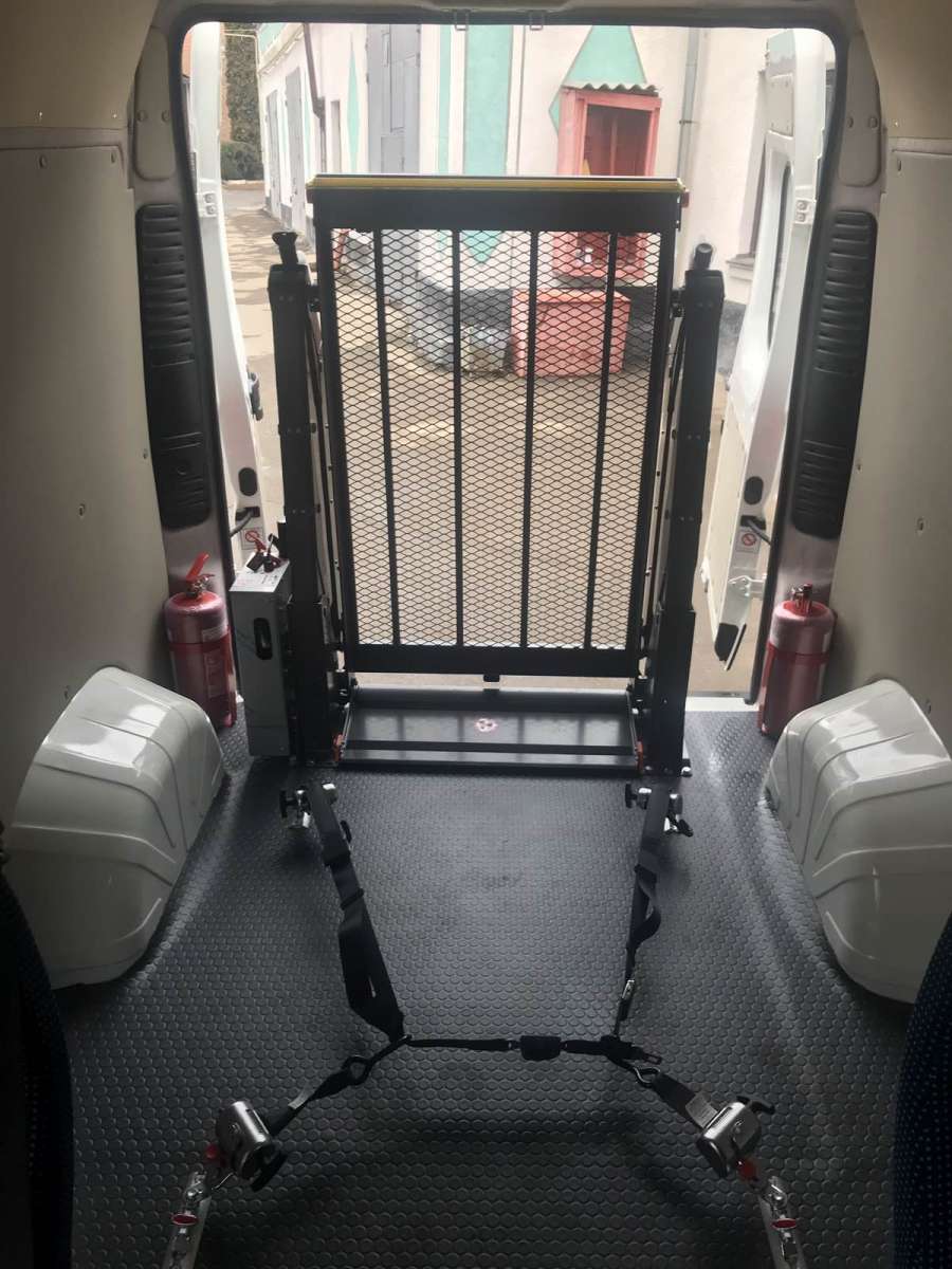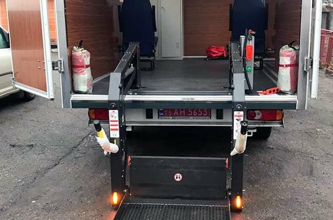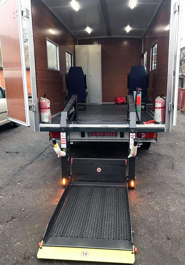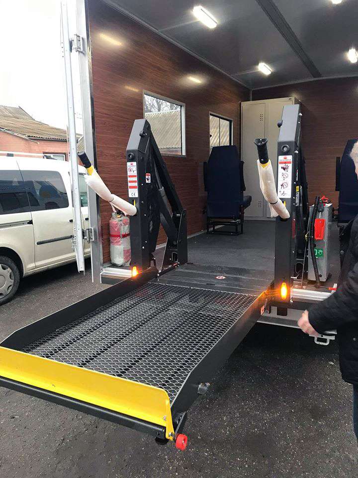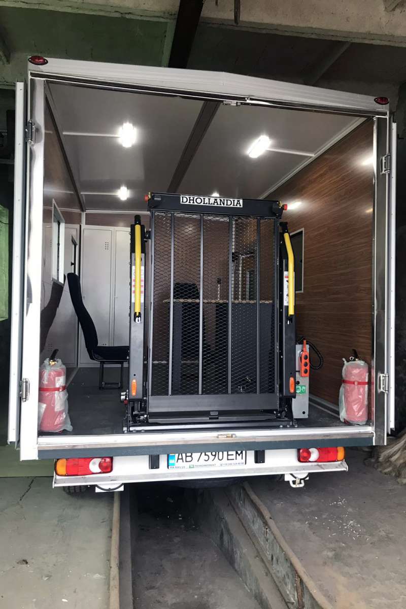 Эта новая спецтехника – не просто транспортное средство для перевозки людей с ограниченными возможностями. Да, сзади в машине установлен специальный электрический гидроподъемник DHOLLANDIA, который удобно и безопасно может через заднюю двустворчатую распашную дверь поднять в пассажирский салон инвалидную коляску, но, помимо транспортировки людей, в самом салоне предусмотрена возможность работы психологов, педагогов и воспитателей с детьми.