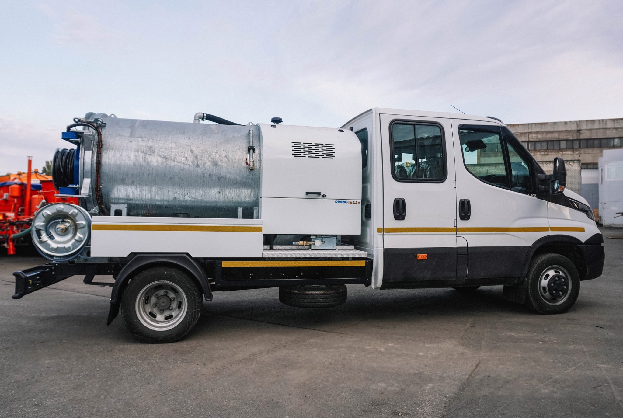 Спецавтомобиль создан на базе шасси IVECO 50C15D с двойной кабиной, идеально подходящей для перевозки бригады численностью до 7 работников, включая водителя.