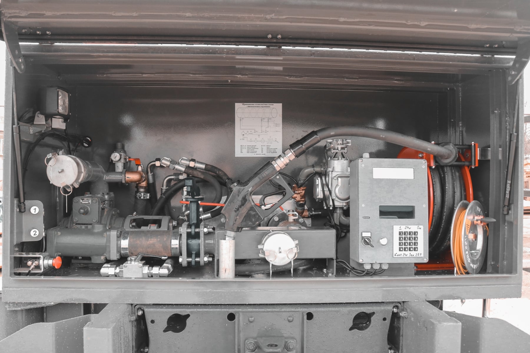 Что же касается надстройки Everlast – то это алюминиевая цистерна емкостью 7000 л. Из специального оборудования нельзя не отметить топливораздаточную колонку (ТРК) от украинской компании Slavutich.