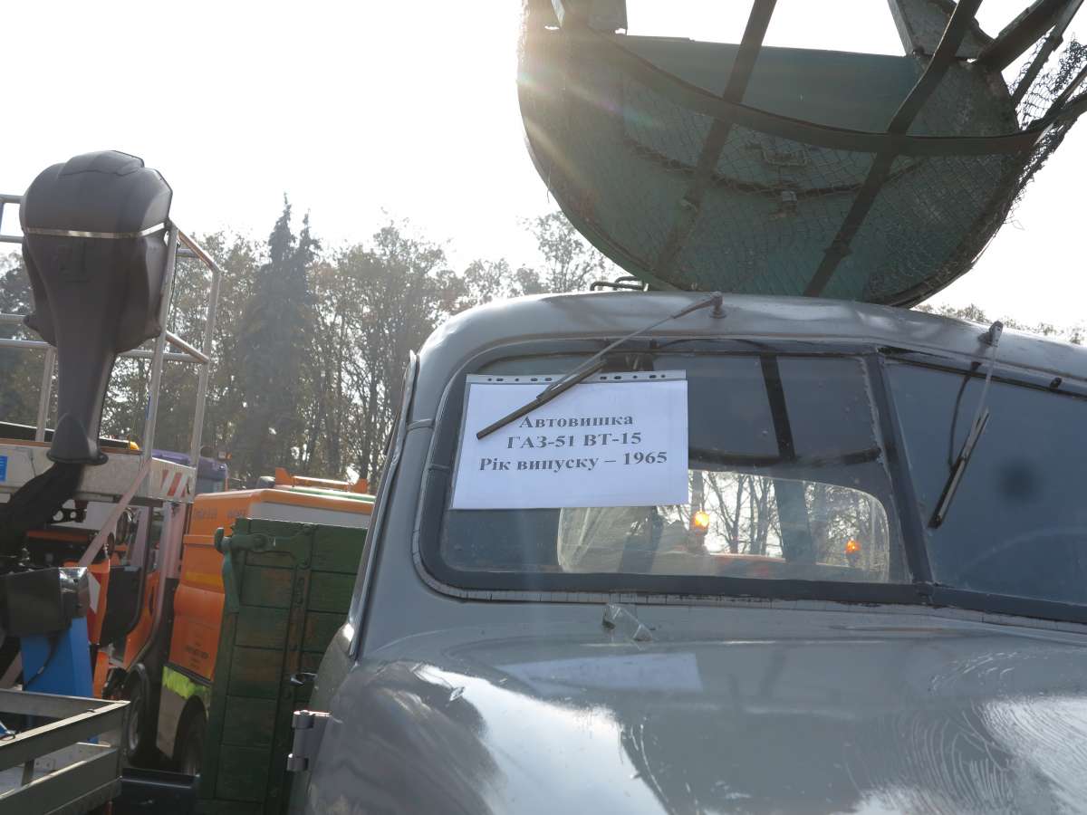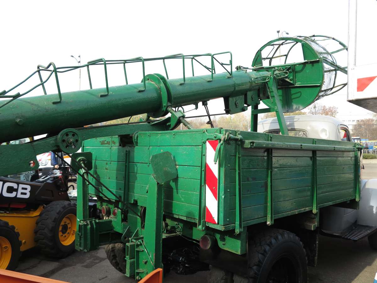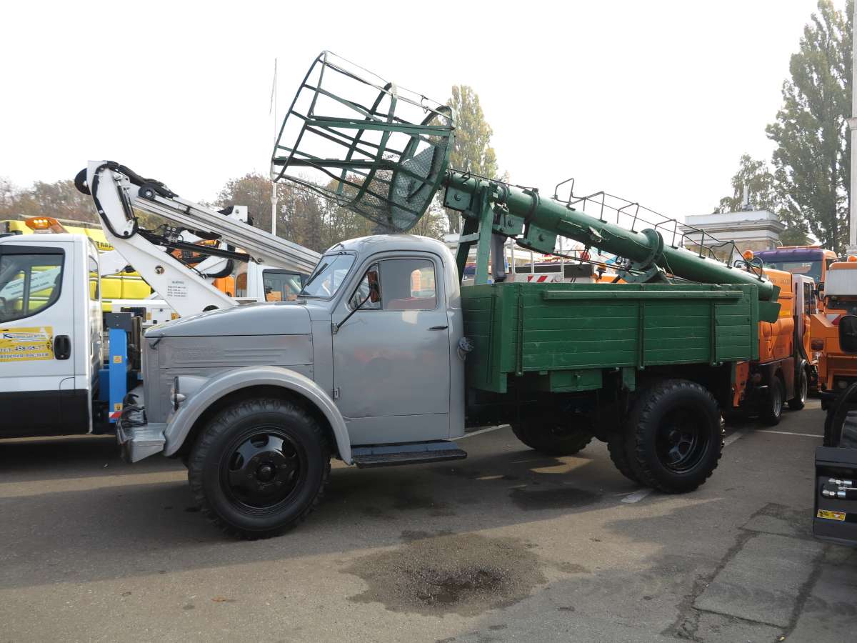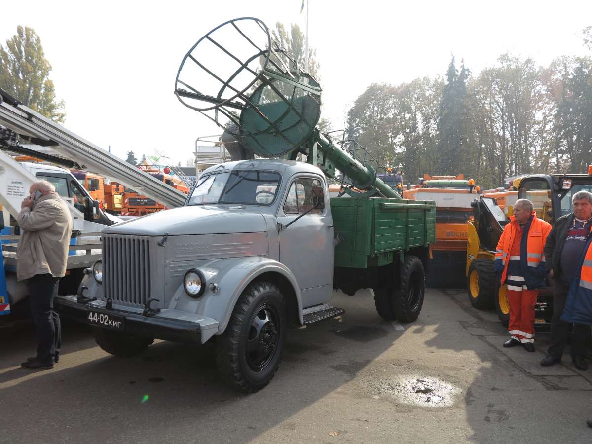 На выставке техники «Киевтодор», которая прошла 23 октября в Киеве, помимо новых машин особый интерес представляла и ретро-экспозиция. Здесь в частности можно было увидеть прекрасно отреставрированную автовышку на шасси ГАЗ-51А выпуска 1965 года.