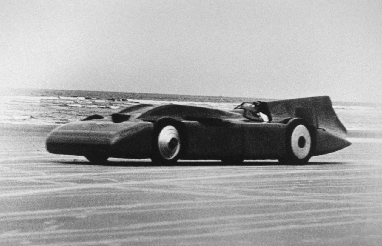 “Синяя птица-5” стартовала там 3 сентября 1935 года. Первый заезд оказался неудачным: в конце дистанции лопнула шина. Зато второй стал триумфальным. Одну милю машина прошла за 12,08 с, показав скорость 301,13 мили в час (484,62 км/ч).