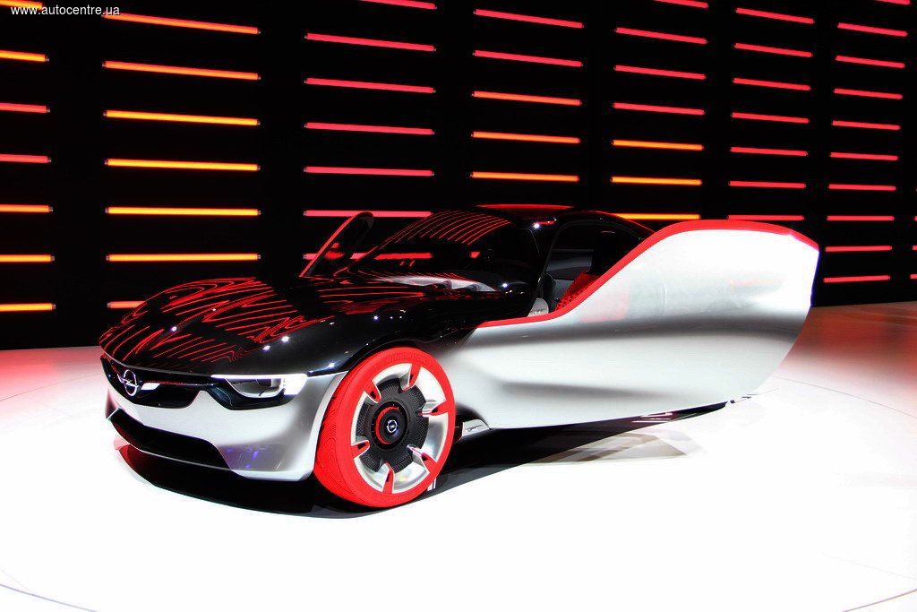 Автомобиль GT Concept получился отдаленно похожим на прототип Opel Monza, но новый концепт оказался еще более футуристичным и, вероятнее всего, далеким от серийного производства. Характерная особенность Opel GT — красная линия, которая разделяет кузов машины по горизонтали и «определяет его пропорции», как говорят в компании. Лобовое стекло автомобиля переходит в панорамную крышу, которую можно снять, придав концепту кузов тарга. Также купе имеет очень короткие свесы кузова.
