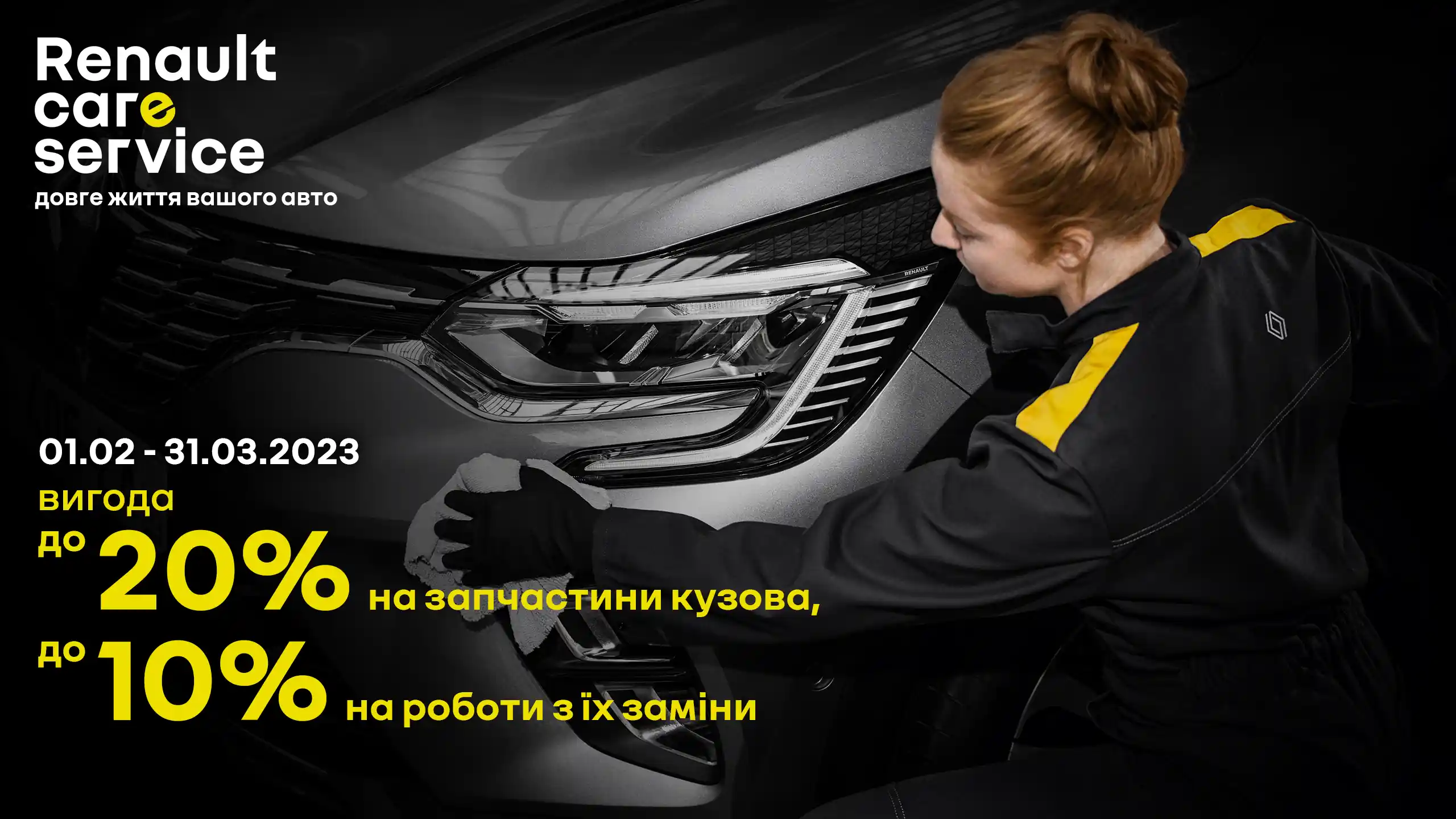 Компания Renault в Украине запускает сервисную акцию "Ремонт кузова с выгодой" в официальной дилерской сети Renault. Период акции: с 01.02 по 31.03.2023 г. В РАМКАХ АКЦИИ КЛИЕНТАМ ПРЕДЛАГАЕТСЯ: