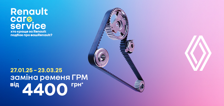 Пропозиція діє з 27.01.2025 до 23.03.2025р виключно в офіційній дилерській мережі Renault на всій території України, за винятком тимчасово окупованих територій та територій, на яких державні органи України тимчасово не здійснюють свої повноваження (території, що перебувають в оточенні (блокуванні)) та/або території на яких тривають активні бойові дії внаслідок збройної агресії Російської федерації проти України.