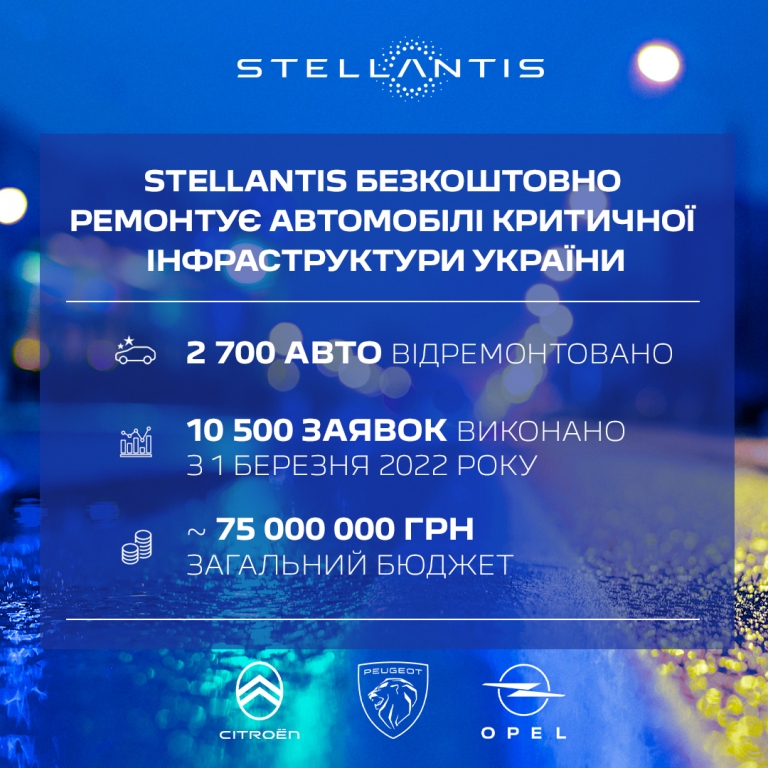 Сьогодні Україна переживає непрості часи, але справжні партнери готові й надалі підтримувати нашу державу. Прикладом може бути програма Концерну Stellantis, яка передбачає безкоштовне обслуговування або ремонт автомобілів екстрених служб, що працюють на благо України: швидка медична допомога, автомобілі комунальних служб та енергетиків, силові структури тощо.