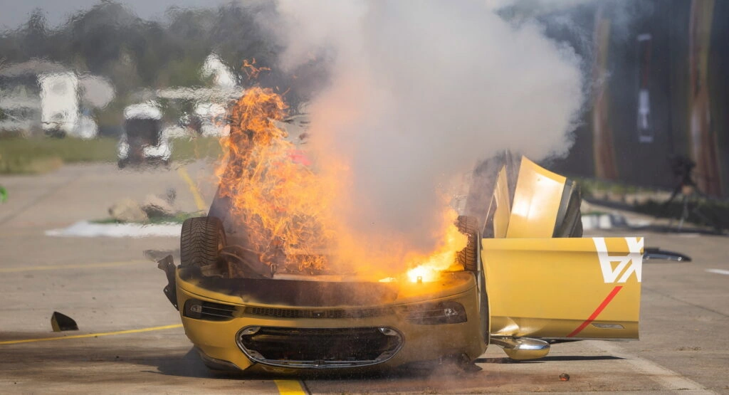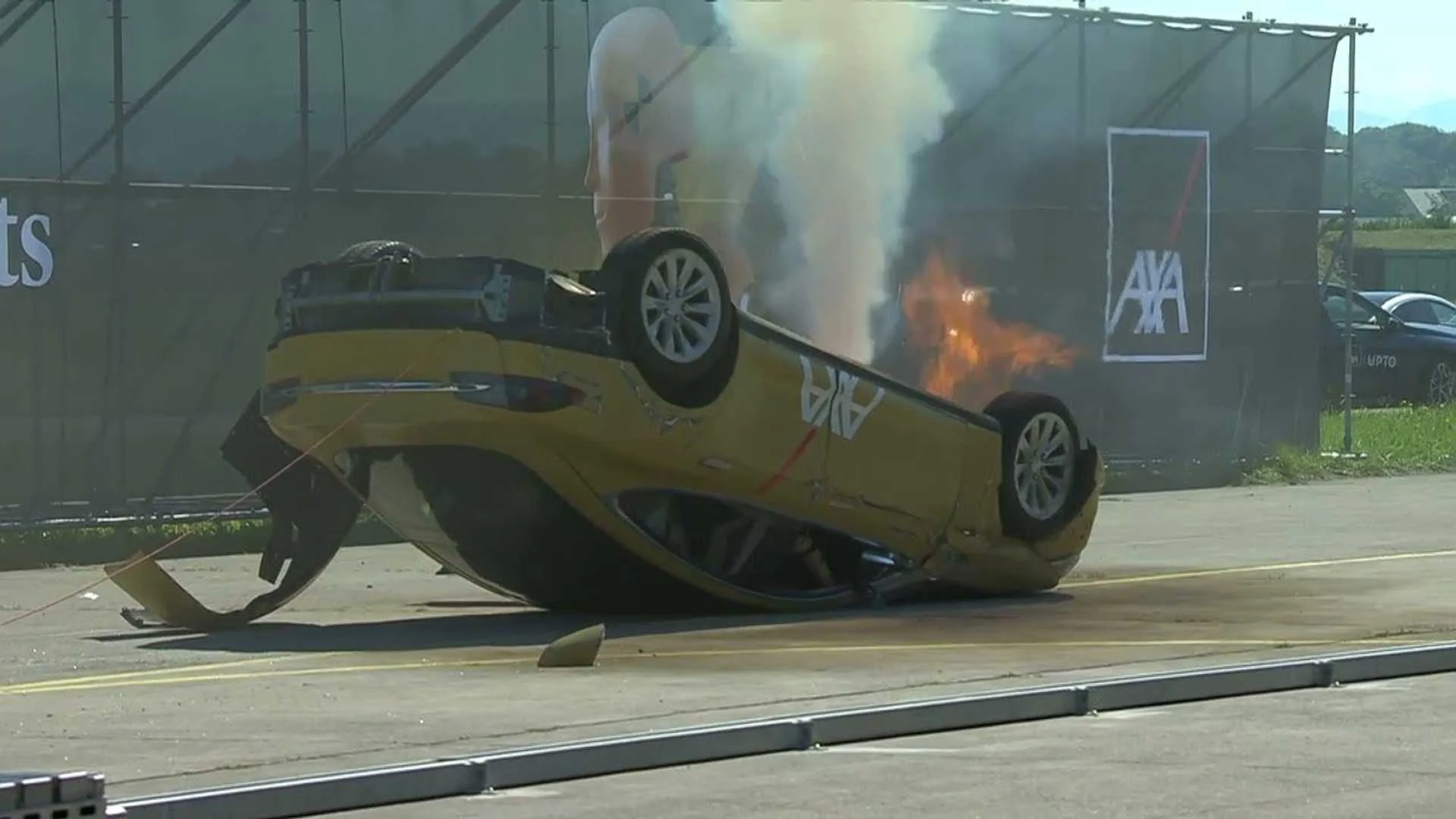 Страховая компания AXA Switzerland опубликовала видео серии краш-тестов, одним из участников которого была Tesla Model S. В ролике видно, как желты электроседан перепрыгивает через рампу, приземляется на крышу и через несколько секунд вспыхивает. Но как оказалось, краш-тест был постановочным.