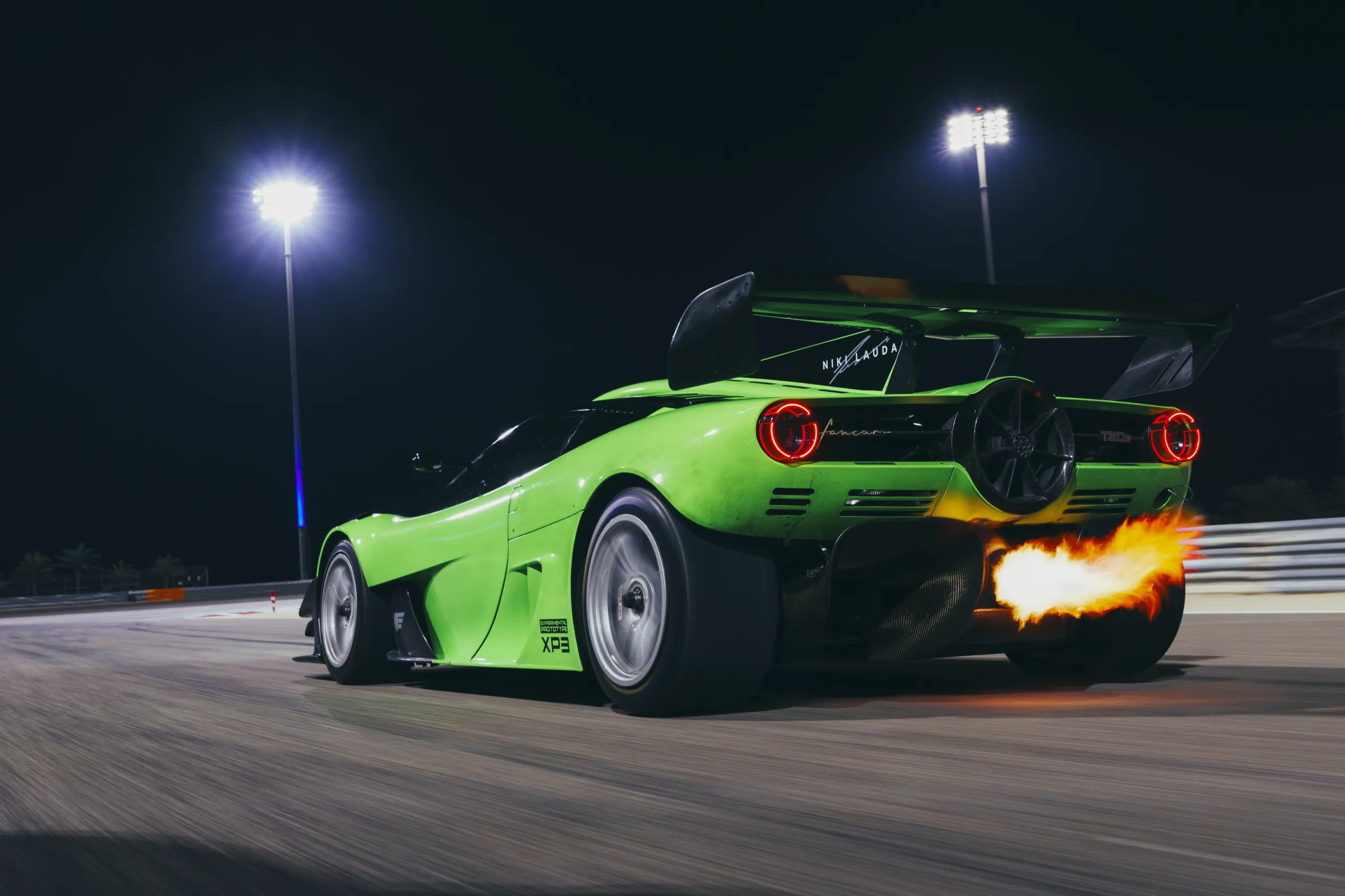 За рулем ярко-зеленого прототипа T.50s Франкитти показал потрясающее время 1:53.03, что на 7 секунд быстрее абсолютного рекорда круга для гоночных болидов класса GT3. Трасса в Бахрейне была выбрана для этого финального этапа программы из-за сочетания скоростных поворотов, зон жесткого торможения и жарких условий. Если T.50s может безупречно показать себя здесь, он должен с легкостью справиться с любой другой трассой. Во время заезда Франкитти развил максимальную скорость 296 км/ч.