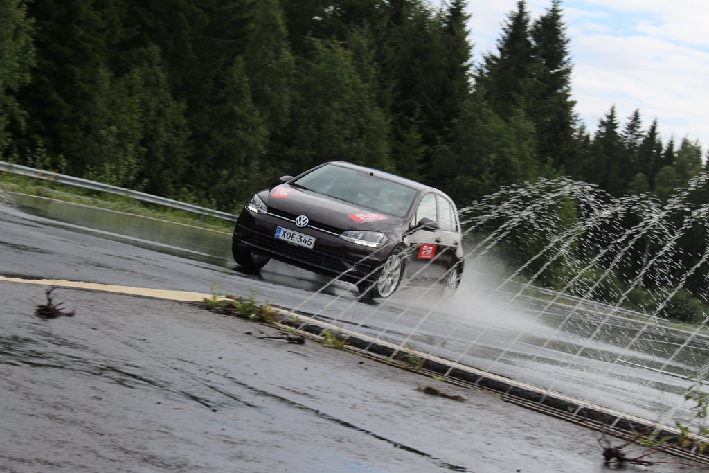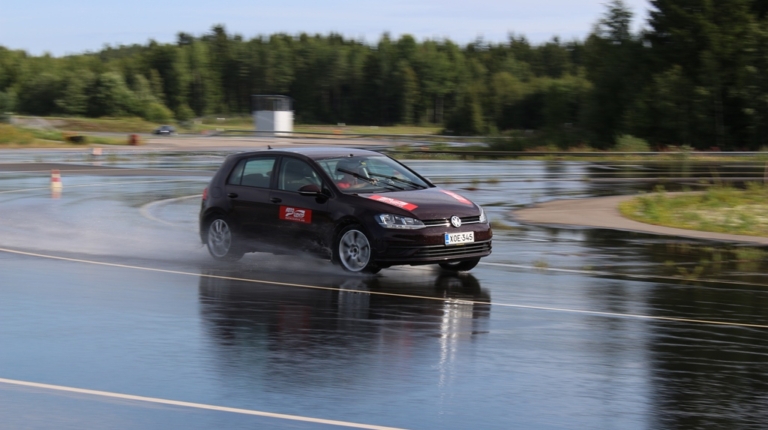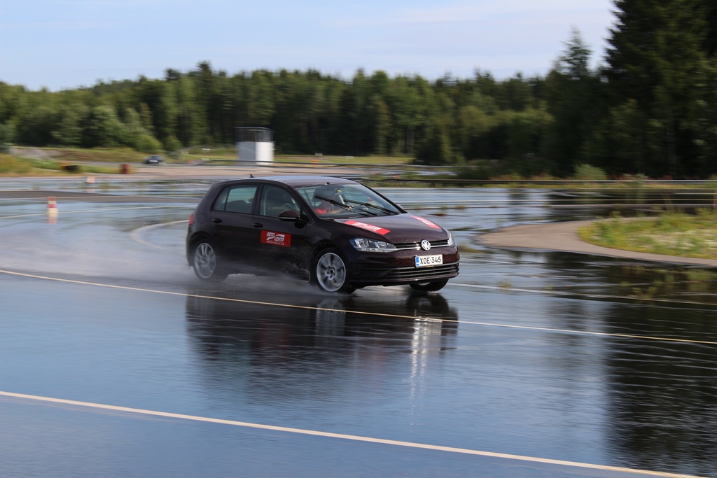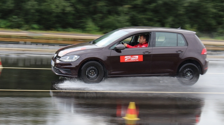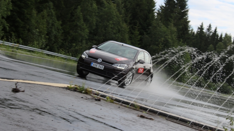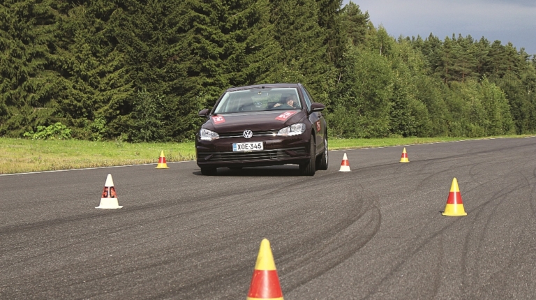 Управляемость на сухом асфальте проверяли в ходе теста «переставка», или, как его называют, «лосиного теста» (объезд внезапно возникшего на дороге препятствия). Здесь абсолютное преимущество у шин 225/45R17, которые позволяют проехать эту экстремальную фигуру на скорости 70 км/ч. В противовес ей на шине 195/65R15 «лосиный тест» удается проехать, не сбивая фишек, только на скорости 63 км/ч. При этом реакции на повороты руля у шины 195/65R15 более медленные. Так, после резкого поворота руля какое-то мгновение ничего не происходит, потом появляется заметный крен, а лишь затем машина начинает маневр. При этом сложнее понять, в каком положении находятся колеса, т.е. в итоге руль становится менее информативным.