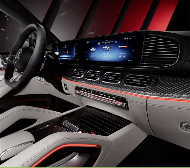 В оснащение салона включены новое рулевое колесо с сенсорными кнопками, обновленная мультимедийная система MBUX с поддержкой беспроводных Android Auto и Apple CarPlay, а также голосовым помощником. В отделке используется высококлассная кожа и алькантара, которые оттеняют хромированные вставки.