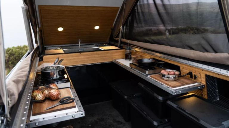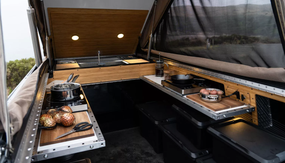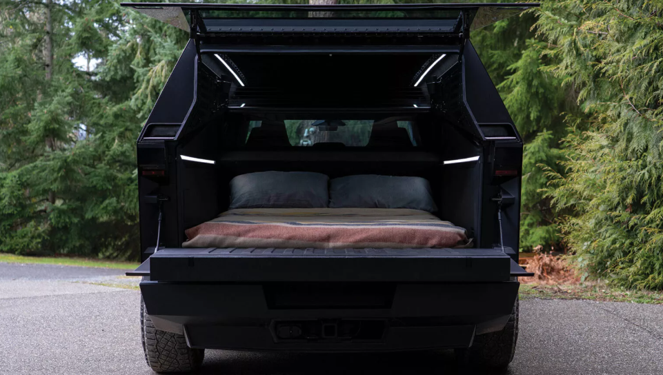 По умолчанию Cybertruck поставляется в глянцевом черном оттенке, но клиенты смогут выбрать желаемый цвет. По мнению Space Camper, их пакет Cap «вывел полезность Tesla Cybertruck на новый уровень». Ведь у пикапов отличная совместимость с палатками и разными надстройками, что позволяет их использовать для переоборудования в кемперы. Внутри палатки, установленной на крыше авто, можно оборудовать не только спальную зону, а и атмосферный кинотеатр под открытым небом. А грузовую платформу можно с легкостью превратить в обеденную.