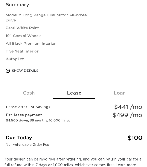 Отметим, что Tesla практикует лизинг с августа 2019 года. Практически год назад она предложила данную услугу для Model 3. Теперь же в аренду можно взять и электрокроссовер Model Y. Стоимость аренды в месяц составляет 499 долларов. Также нужно внести задаток в размере 4500 долларов. Максимальный срок аренды составляет 36 месяцев с выделением 10 тысяч миль (16 тысяч километров).