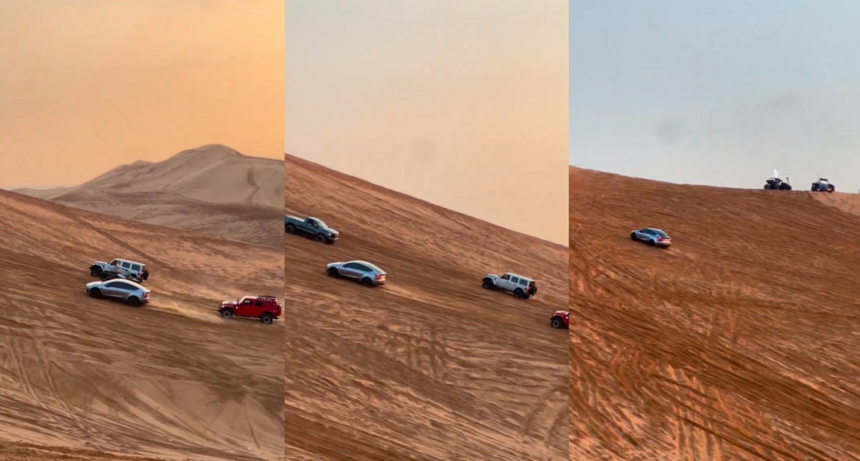 Tesla Model Y обошел Jeep Wrangler при подъеме на песчаный холм (видео)