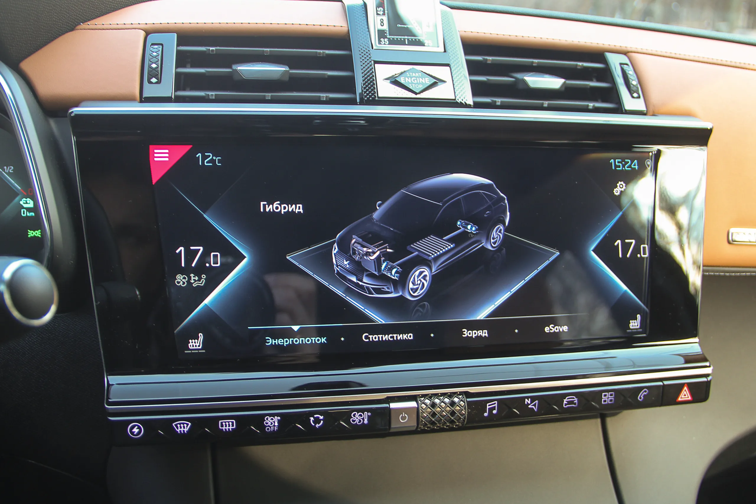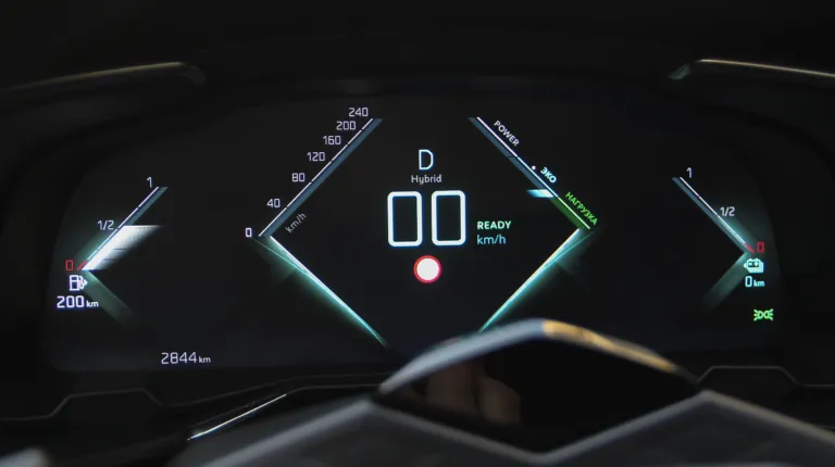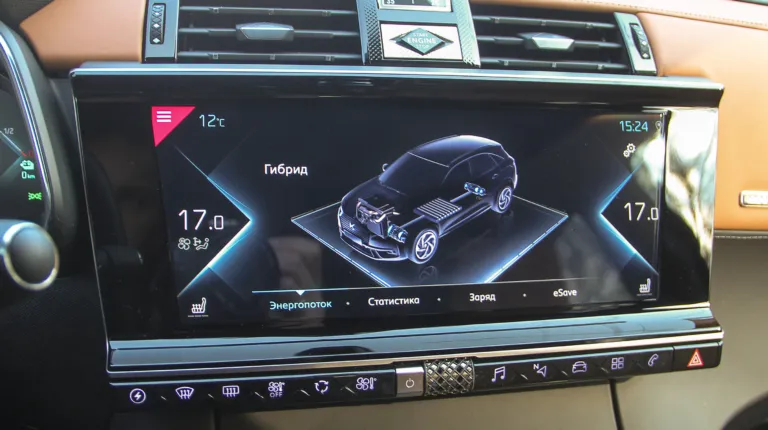 В целом, в салоне все так же, как и в обычной версии, разве только в меню появились новые функции и инфографика, касающиеся гибридных режимов движения. На красиво нарисованной схеме легко можно понять, как перераспределяются потоки энергии и от какого привода приводится в движение автомобиль. Такая вкладка есть как на экране мультимедиа, так и на цифровой приборной панели. Жаль только, что графика самой приборки осталась без изменений – уж слишком мелковата она.