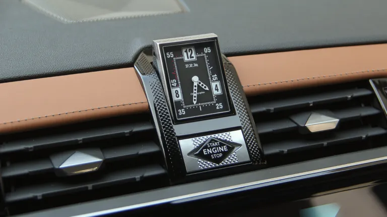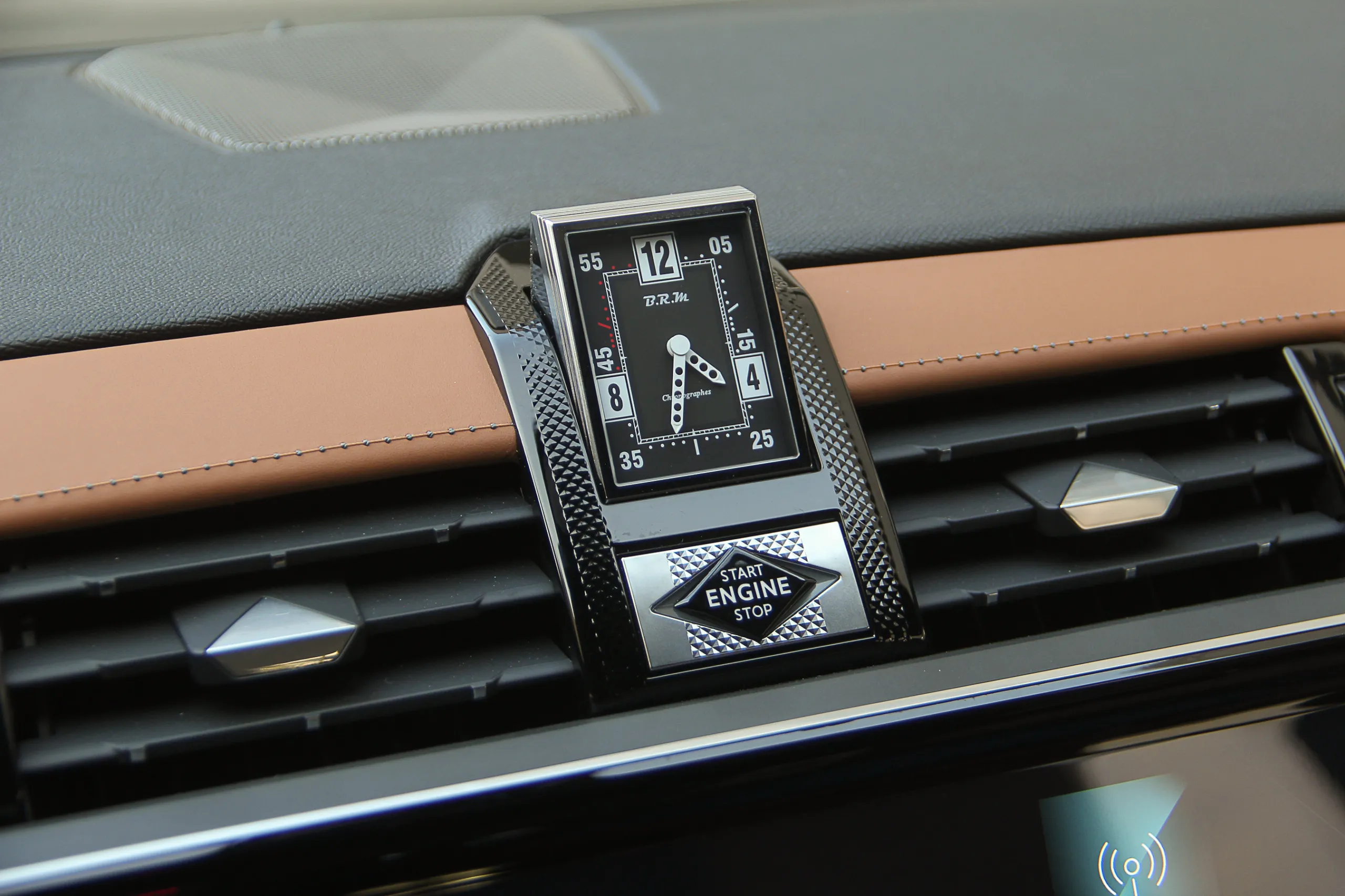 Людям непосвященным это название вряд ли что-то скажет, но те, кто разбираются в вопросе хорошо знают эту французскую фирму эксклюзивных спортивных часов. Кстати, основатель этой фирмы, чьи инициалы и зашифрованы в ее названии был поклонником автоспорта, так что выбор бренда патриотичен и не случаен. И просто чтобы вы были в курсе: средняя стоимость хронографов B.R.M. примерно 5-6 тысяч Евро, но есть эксклюзивные модели за 50 и даже 100 тысяч Евро! Интересно, сколько стоят именно эти, по центру торпедо?