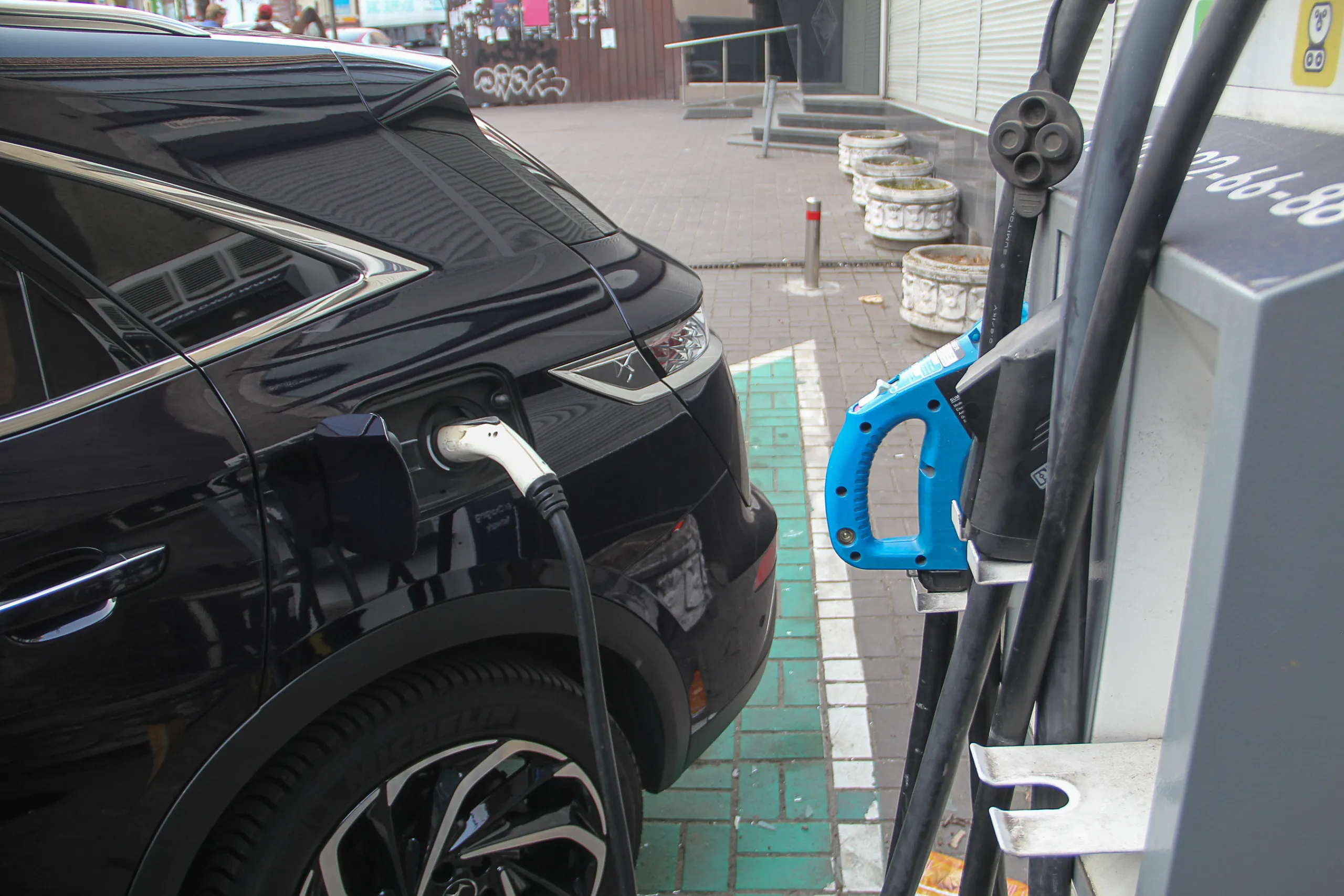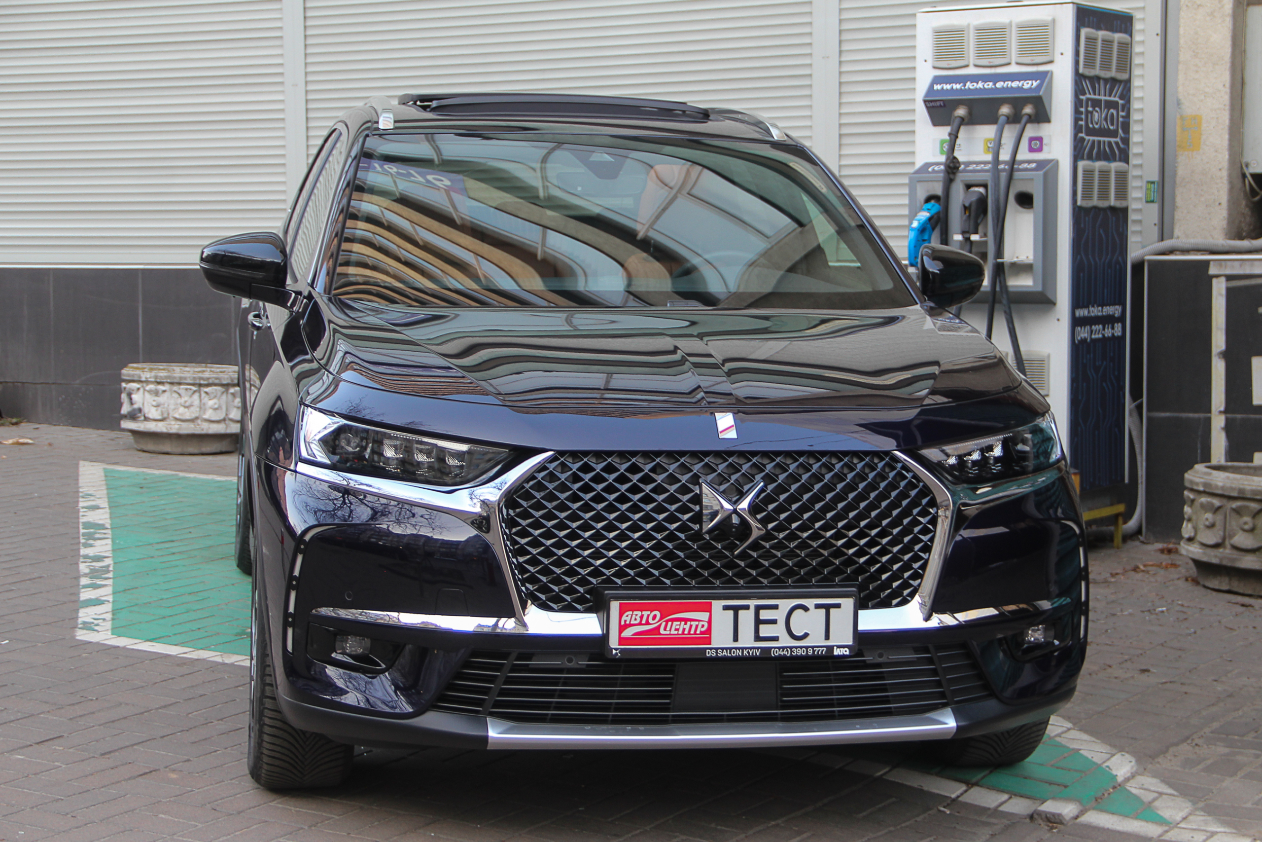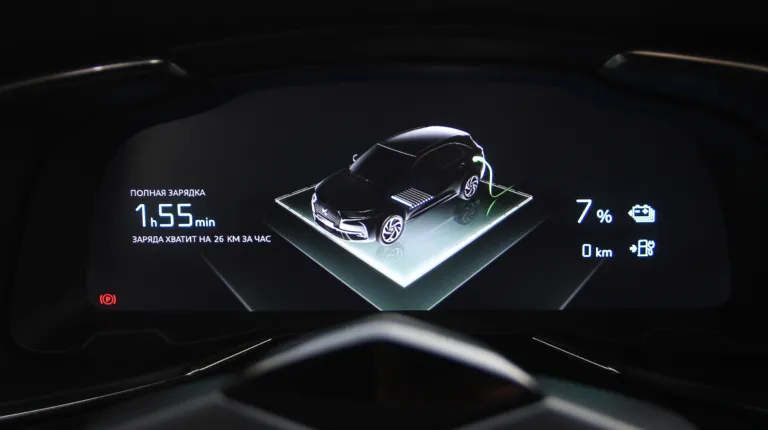 Зарядить DS 7 Crossback E-Tense можно как от обычной домашней розетки – зарядное устройство для этого идет в комплекте – так и от зарядной станции. Но здесь есть один нюанс: как правило публичные зарядки не комплектуются кабелем для разъема Type 2 и его нужно иметь с собой. У нас таковой имелся, что сразу расширяет географию зарядок. В противном случае нужно искать зарядную стеллу со своим кабелем. Как правило это те, которые выдают хорошую мощность, но встречаются они редко.