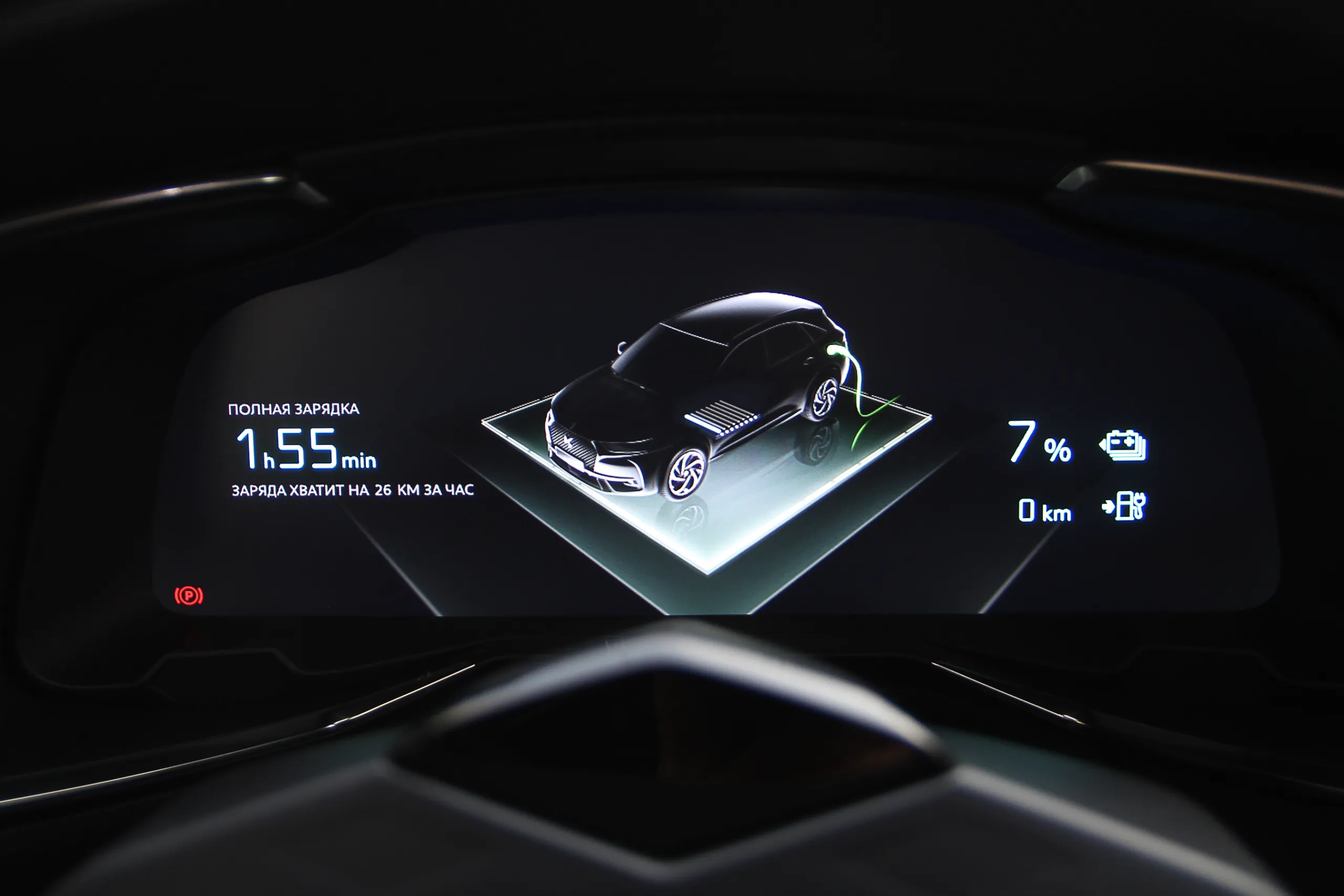 Впрочем, скорость зарядки от такой станции все равно ограничивается параметрами зарядного устройства автомобиля. И в данном случае оно готов “принимать” 7,4 кВт. Т.е. на зарядку батареи от нуля до полного потребуется чуть менее двух часов, но на практике все два, потому что последние проценты заряда будут добираться очень медленно.