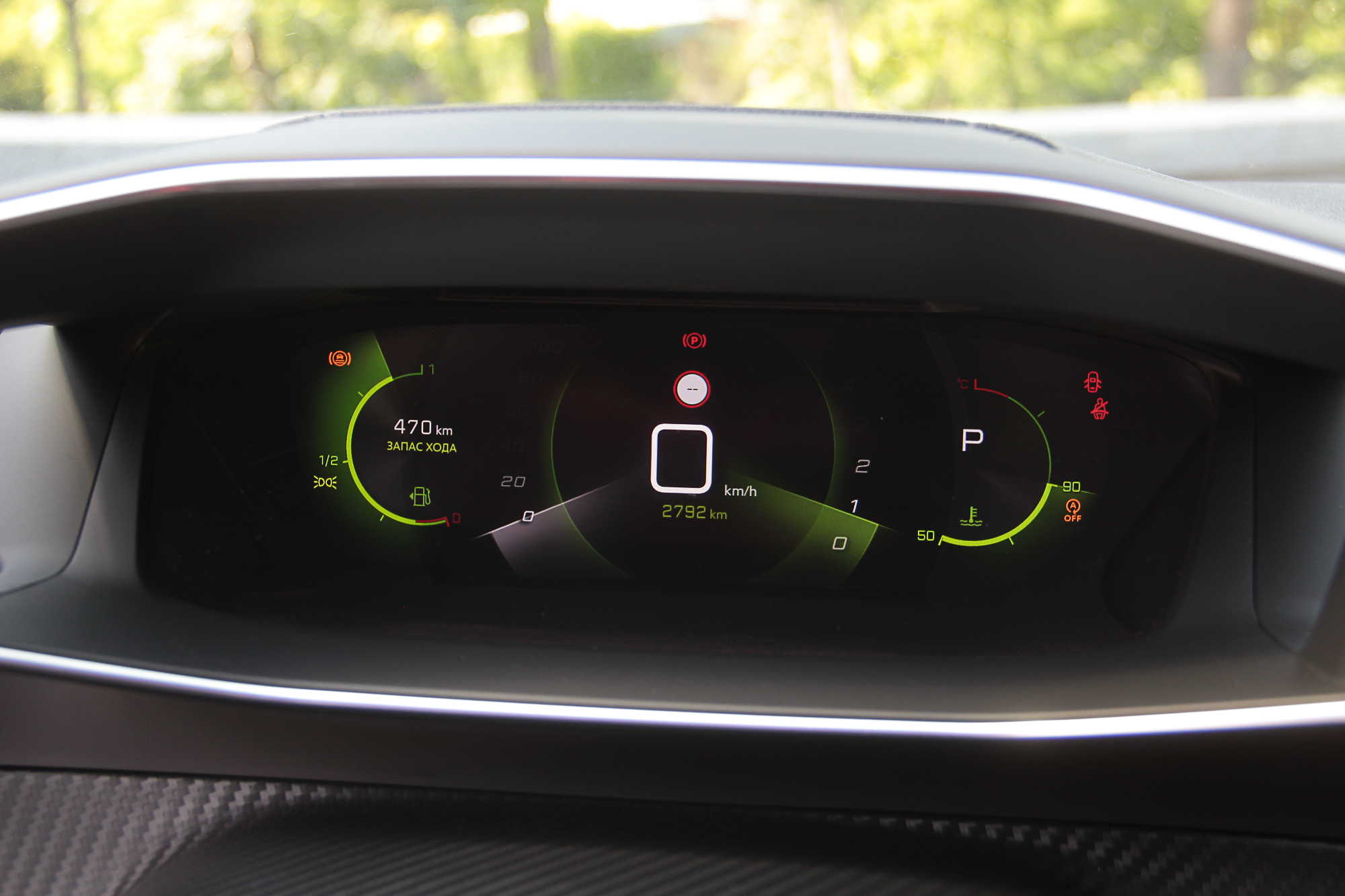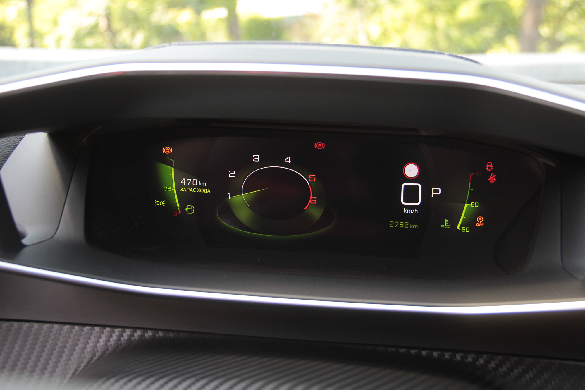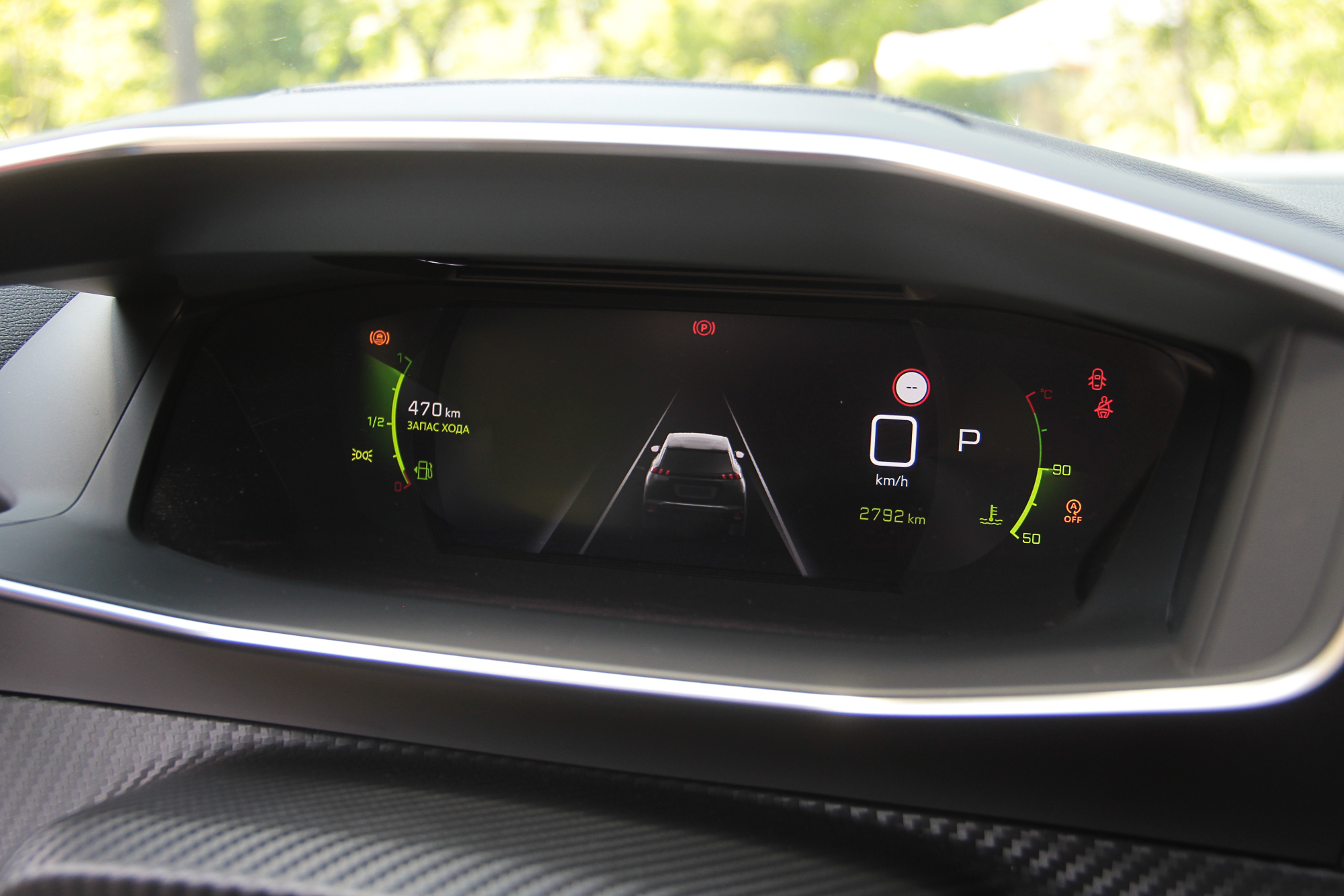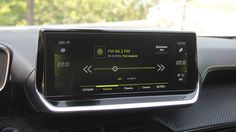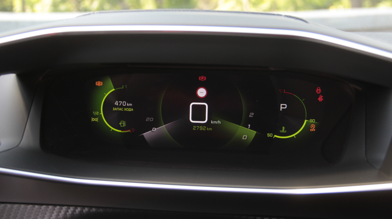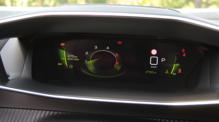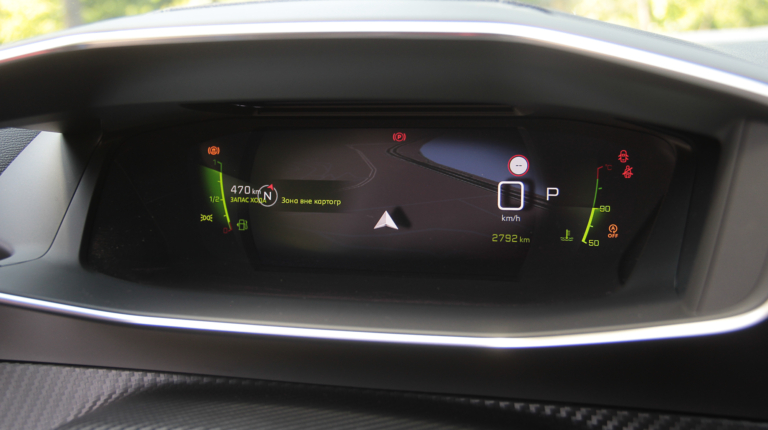 К тому же, сам смартфон можно зафиксировать на откинутой крышке таким образом, чтобы было видно его экран. Еще одна ниша со свободным доступом годится вообще для всего. Смутило только обилие черного рояльного лака на центральном тоннеле. Впрочем, с полностью кожаным салоном (опция даже для топовой версии GT-Line), который был на тестовой машине, он гармонирует неплохо. Чтобы как-то разбавить темную гамму, добавили акцентов в виде ярко-зеленой строчки и контурной подсветки на торпедо и в картах передних дверей. К тому же цветовую схему приборной панели и центрального дисплея можно менять – предложены еще синий и красные варианты. Само собой, 3D приборная панель имеет несколько вариантов представления, которые можно подбирать в зависимости от того, какая информация является более актуальной на данный момент. Ну или просто для разнообразия.