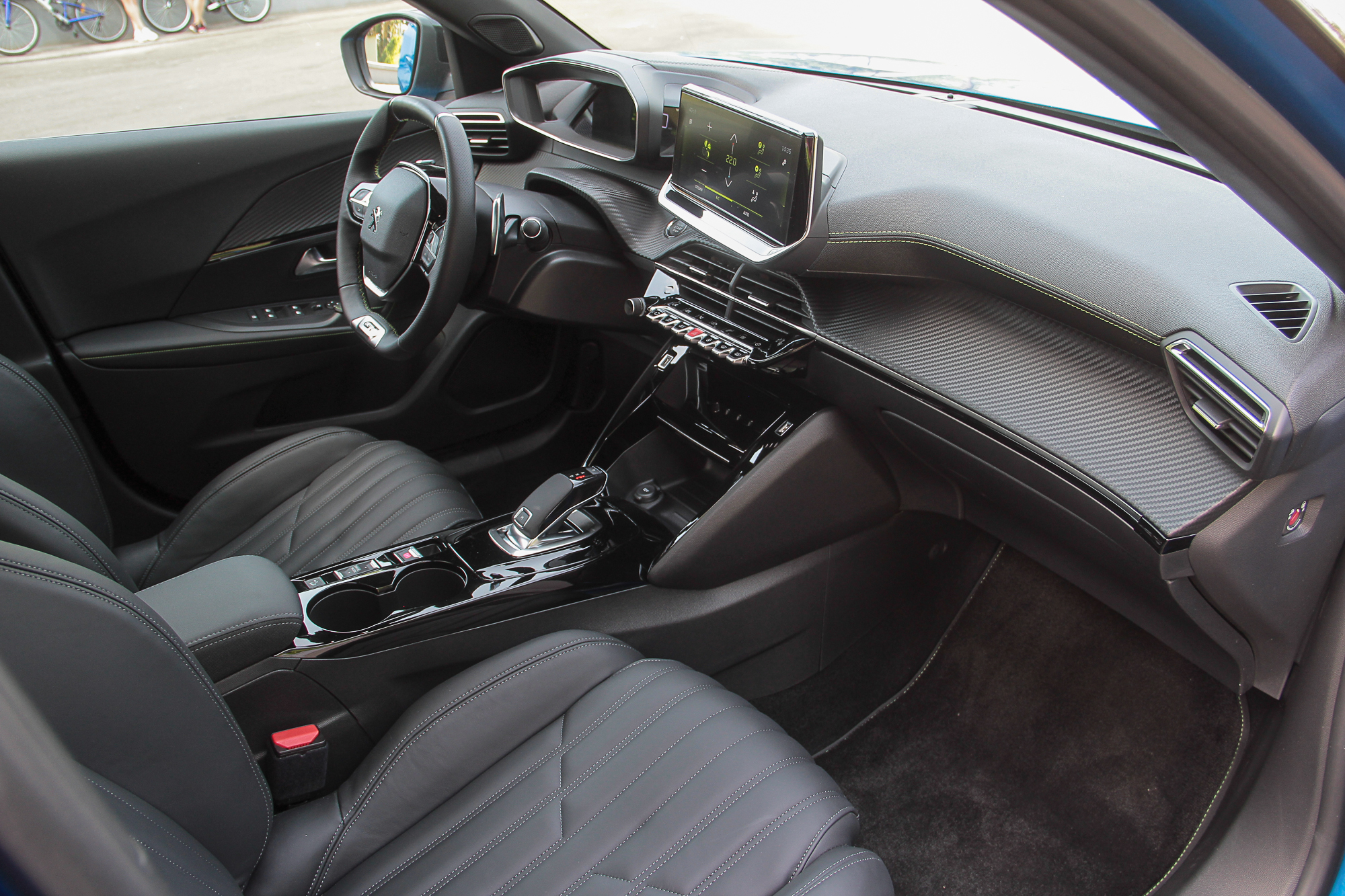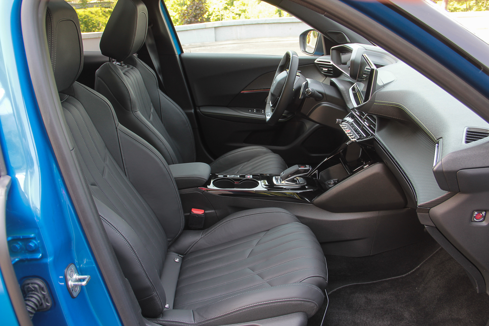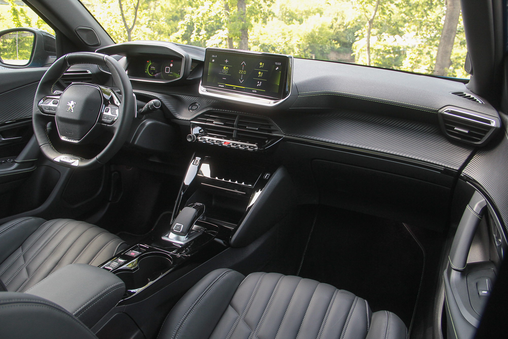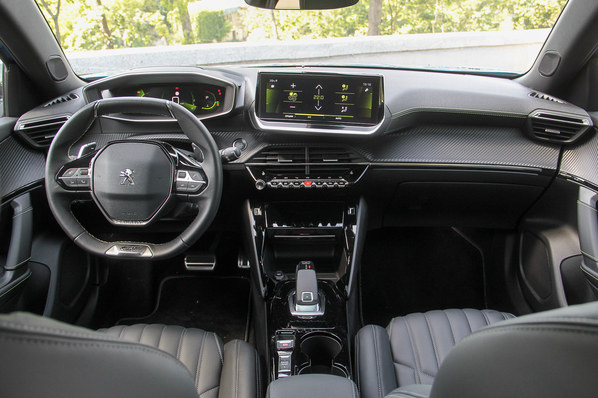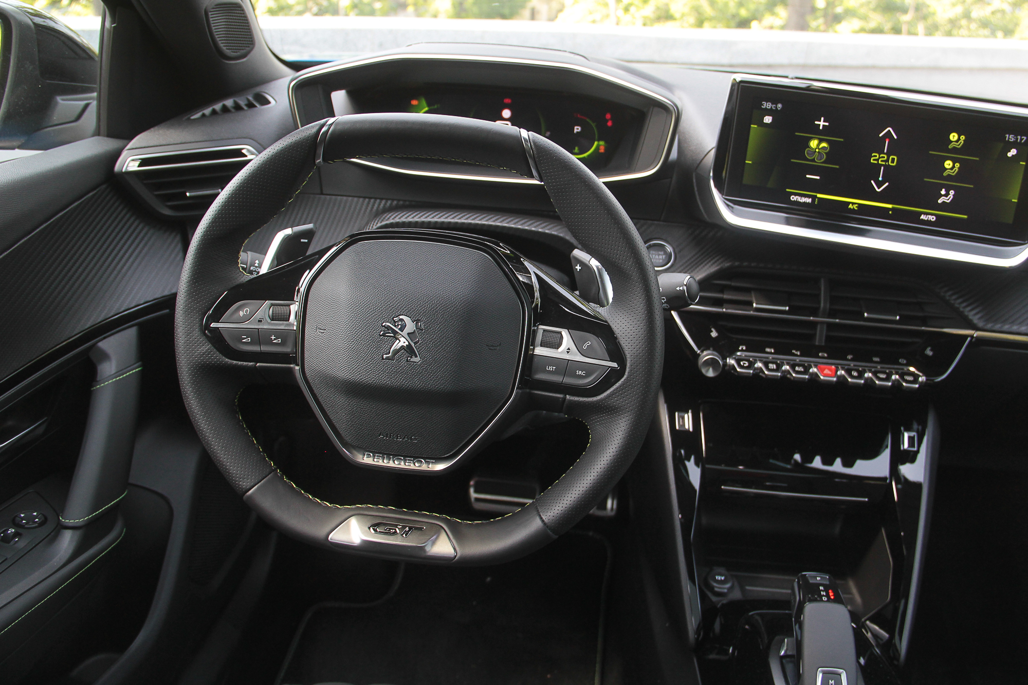 К тому же, сам смартфон можно зафиксировать на откинутой крышке таким образом, чтобы было видно его экран. Еще одна ниша со свободным доступом годится вообще для всего. Смутило только обилие черного рояльного лака на центральном тоннеле. Впрочем, с полностью кожаным салоном (опция даже для топовой версии GT-Line), который был на тестовой машине, он гармонирует неплохо. Чтобы как-то разбавить темную гамму, добавили акцентов в виде ярко-зеленой строчки и контурной подсветки на торпедо и в картах передних дверей. К тому же цветовую схему приборной панели и центрального дисплея можно менять – предложены еще синий и красные варианты. Само собой, 3D приборная панель имеет несколько вариантов представления, которые можно подбирать в зависимости от того, какая информация является более актуальной на данный момент. Ну или просто для разнообразия.