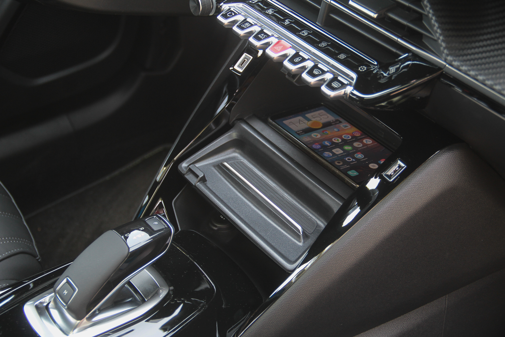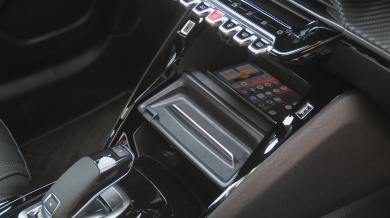 Во-вторых, это свежайшая интерпретация фирменного интерьера с 10-дюймовым сенсорным экраном, развернутым на водителя и фактурной передней панелью. За счет глубокой выемки дисплеи здесь как бы отстоят отдельно, а “этажом ниже” – уже привычная клавиатура, но в новой интерпретации. Один ряд – это физические кнопки, второй – сенсорные. Поначалу непривычно и надо присматриваться, какую именно нажать. Но спаковав все таким плотным образом, дизайнеры высвободили немало место под ниши и емкости. Первая, за откидной крышкой, предназначена в первую очередь для смартфонов, поскольку здесь есть беспроводная зарядка.