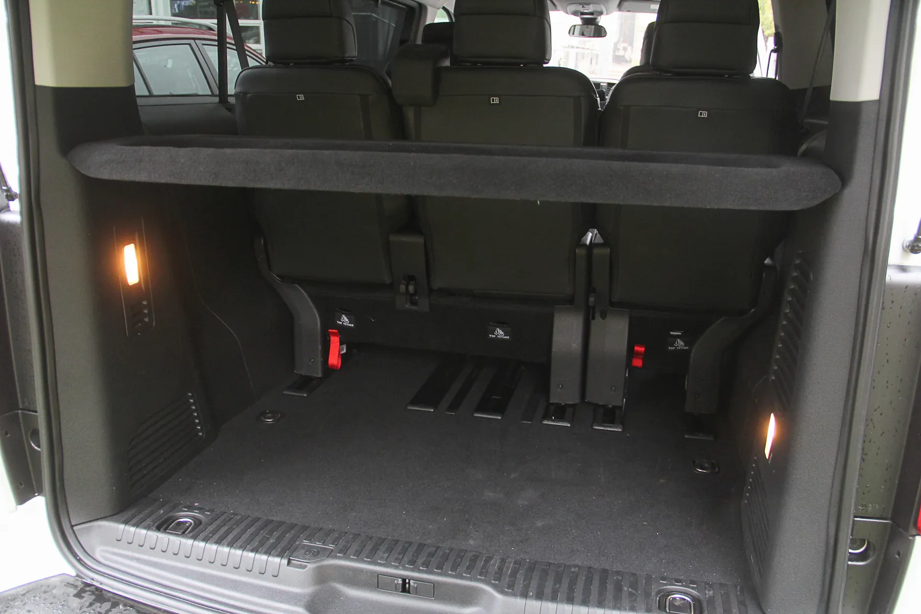 Галёрка будет поскромнее, ведь места здесь три, и по ширине они слегка поджаты задними колёсными арками. Но по ногам не тесно и здесь, ведь при правильной настройке второго и третьего ряда всем пяти седокам т.н. “пассажирского” отсека будет удобно.