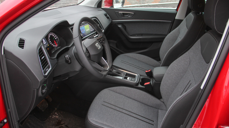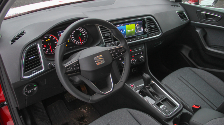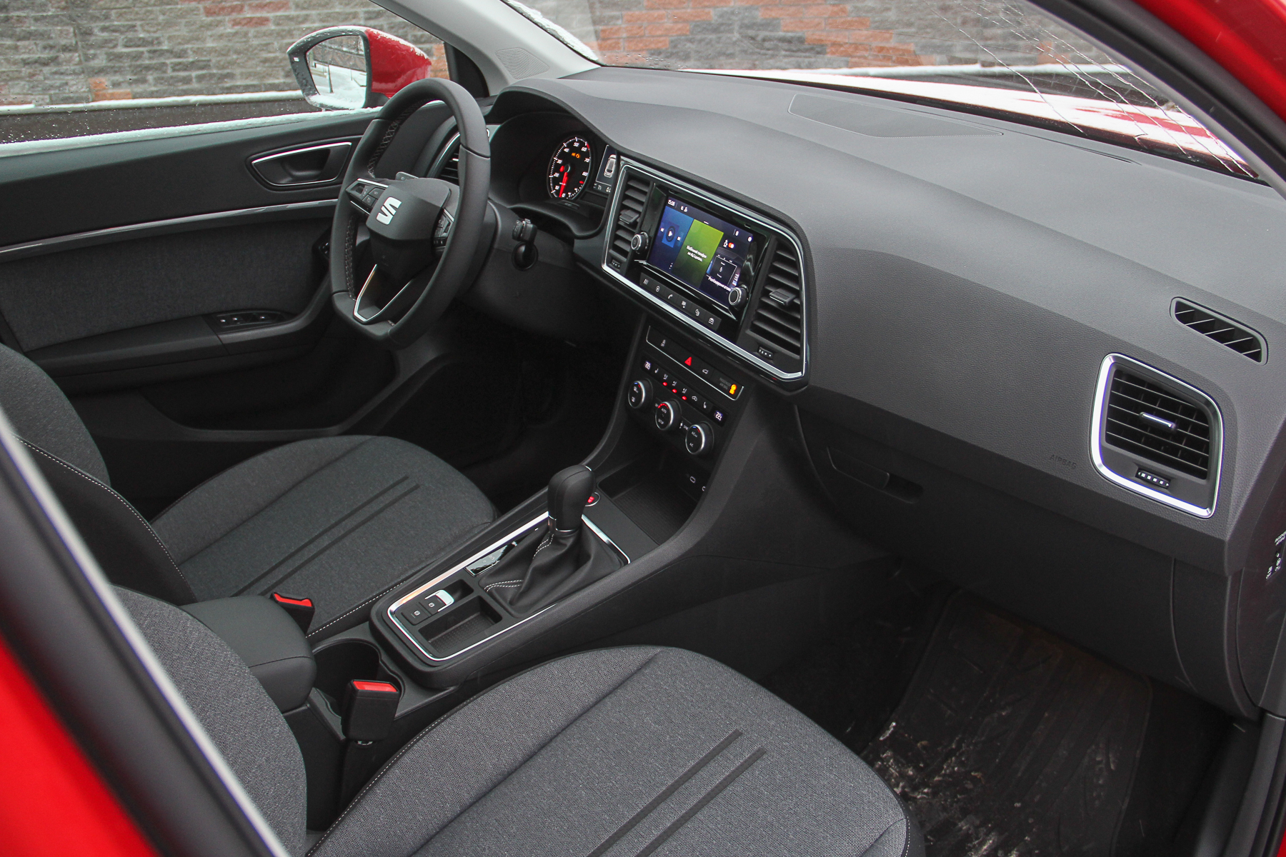 Под капотом тестовой SEAT Ateca уже хорошо знакомый турбобензиновый двигатель 1.5 TSI мощностью 150 л.с. с системой отключения цилиндров (2 из 4), который уже несколько раз фигурировал в наших тестах. Крутящий момент в 250 Ньютоно-метров доступен в диапазоне уже от 1500 и до 3500 оборотов, что наделяет силовой агрегат отличной эластичностью. Разгонная динамика обещана на уровне 8,6 сек. до “сотни”, и это чуть быстрее, чем было у дорестайлинговой Ateca с 1.4 TSI (150 л.с.) и 6DSG.