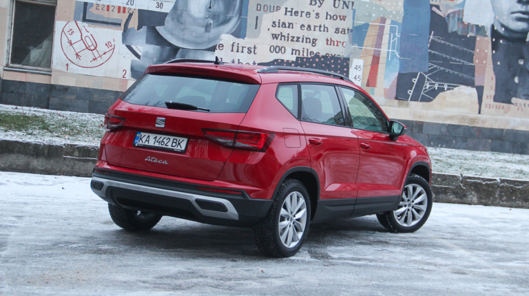 Ну а тестовый автомобиль – это SEAT Ateca Style c турбобензиновым двигателем 1.5 TSI на 150 л.с. и коробкой передач 7DSG. Style – это одна из двух комплектаций на нашем рынке, причем не самая оснащенная. Топовой считается Style Plus, но в тестовой машине вдобавок к стандартным опциям были установлены еще и дополнительные, такие как автоматическое открывание двери багажника (и закрывание с кнопки), камера заднего вида, заводская тонировка, датчики света и дождя, SEAT Full Link для медиасистемы и некоторые другие. Поэтому этот автомобиль потянул на 881 186 грн. или же ориентировочно на 31 тысячу $. Но в наличии у дилеров есть Ateca и без доп опций или с некоторыми из них, где стартовая цена составляет 811 тыс. грн.