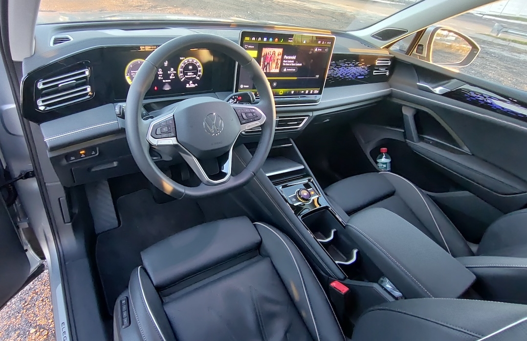 Селектор коробки передач, так же как у нового Passat и ID.7, перенесли на правый подрулевой рычаг. Он имеет интуитивно понятный принцип работы: переключатель поворачивается вперед к D для движения вперед и назад к R для заднего хода, тогда как стояночный тормоз активируется нажатием боковой кнопки переключателя.