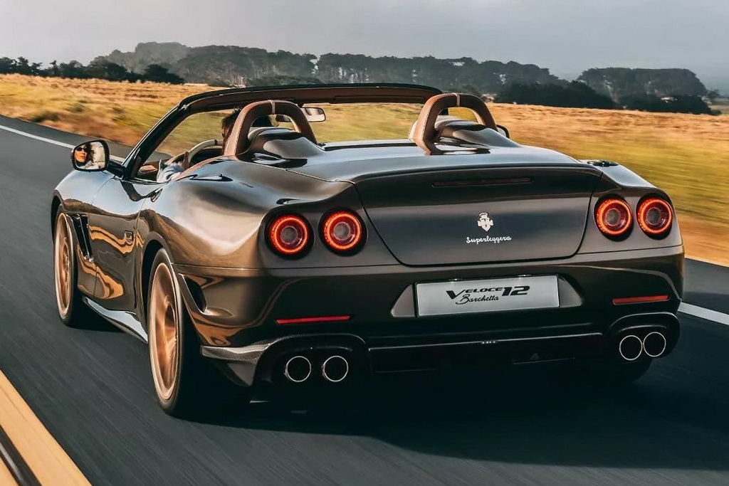 От “родственников” из Маранелло новинка отличается иным дизайном передней части, светотехникой и карбоновыми панелями кузова. Автомобиль получил складной магкий верх, а безопасность обеспечивают две обтянутые кожей дуги безопасности за сиденьями водителя и единственного пассажира. Кроме того, Touring Superleggera разработала для Veloce12 уникальную заднюю панель, оригинальные патрубки выхлопной системы и карбоновый диффузор.