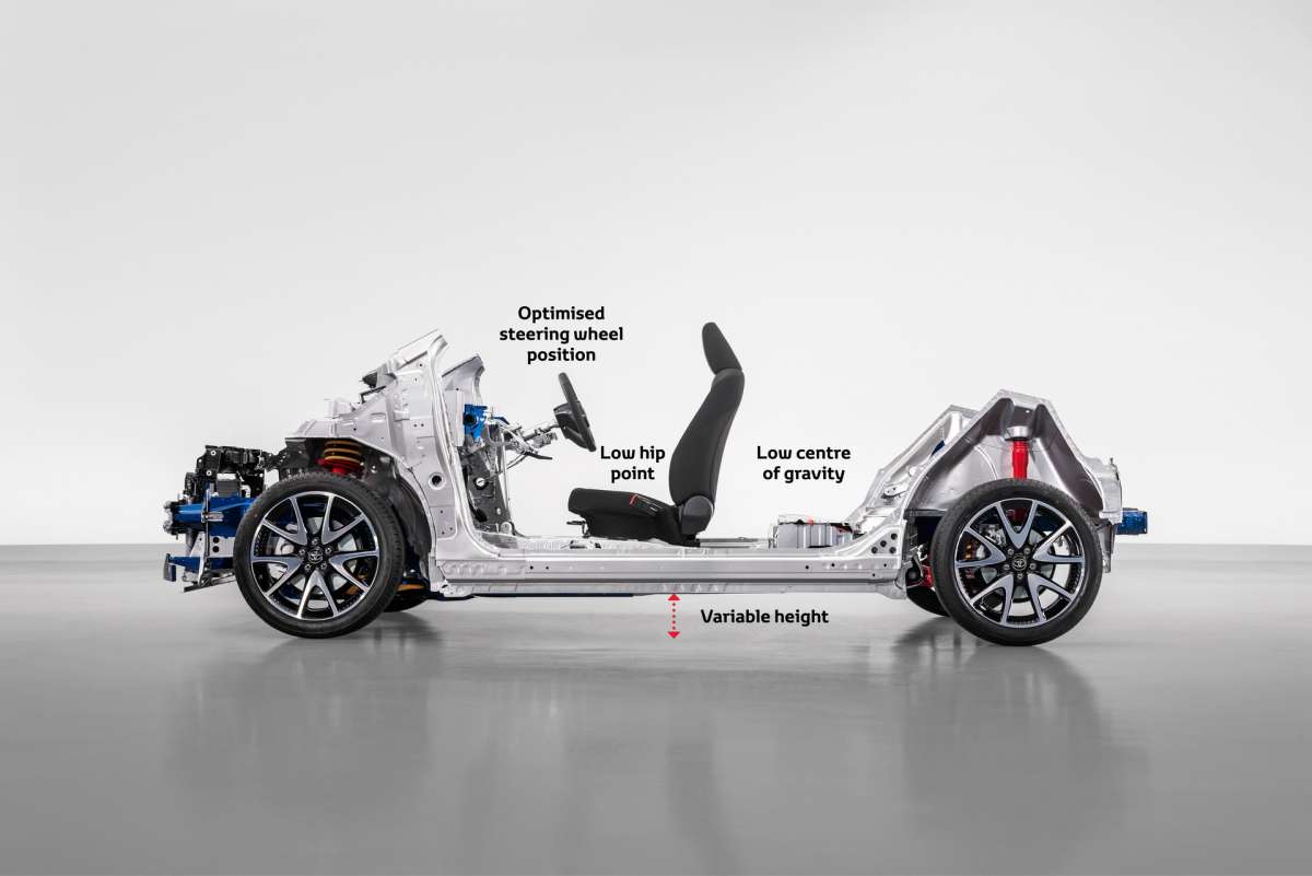 Предстоящий внедорожник на базе Yaris станет второй моделью Toyota, в которой будет использоваться гибкая архитектура GA-B, которая подразумевает установку классического McPherson спереди и торсионной балки – сзади. По сравнению с хэтчбеком Yaris, он должен быть чуть длиннее и примерно на 40 мм выше, с более длинной колесной базой и более широкой колеей. Платформа также совместима с более изысканной многорычажной задней подвеской, что указывает на то, что Toyota может выпускать и полноприводные версии, если она того пожелает.