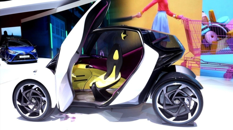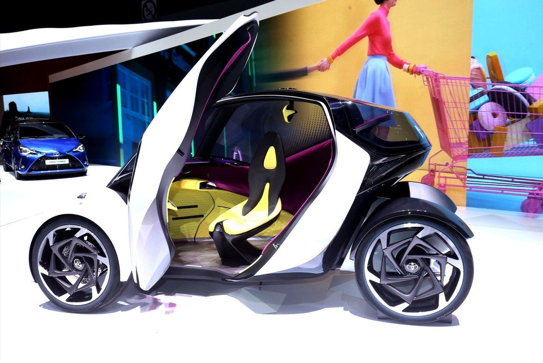 Новая Toyota i-Tril – компактный 2,8-метровый автомобиль весом всего 600 кг. У него весьма авангардный дизайн с выраженным «носом» и панорамным лобовым стеклом. Двери подымаются вверх.