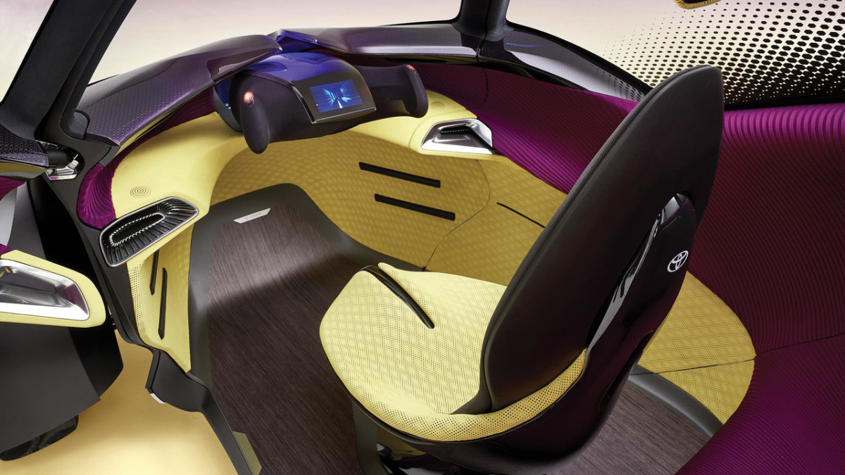 Вместо руля и педалей Toyota i-Tril получил большой многофункциональный джойстик. По центру его установлен небольшой дисплей, показания приборов также выведены на лобовое стекло.