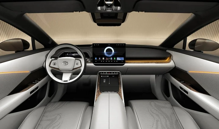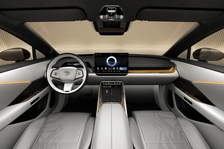 В длину Toyota bZ7 достигает 5130 мм при колесной базе 3020 мм. Ширина и высота составляют 1965 и 1506 мм соответственно. Салон седана просторный и комфортный. Он получил оригинальные цветовые решения и современное оснащение. Есть цифровая приборная панель и мультимедийная система, которая использует платформу Huawei Hongmeng. Список систем помощи водителю широкий, включая автопилот.