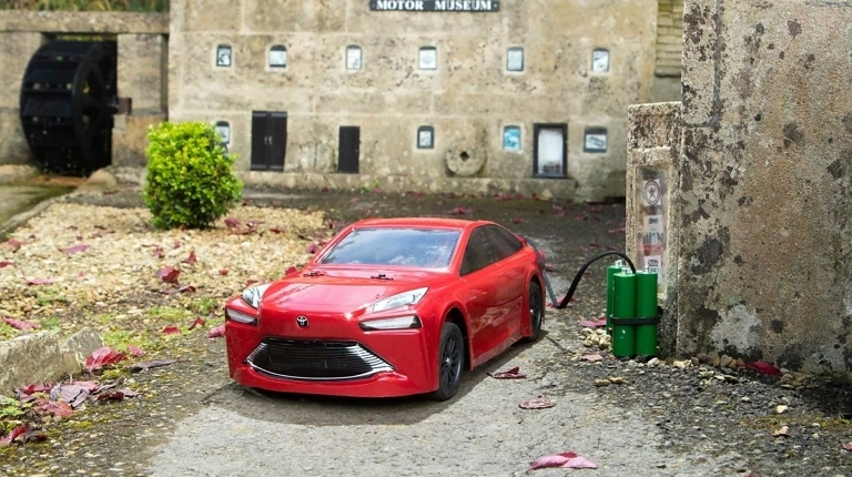 Инженеры Toyota совместно со специалистами технологической компании Bramble Energ и фирмой Tamiya построили уменьшенную копию водородного седана Mirai. Моделька в масштабе 1:10 полностью соответствует оригиналу как в плане экстерьера, так и в отношении силовой установки.